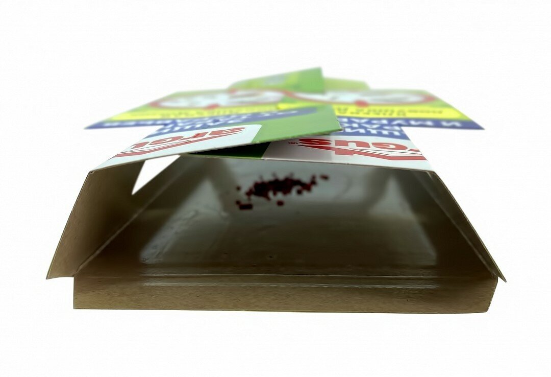 | Способ применения | аккуратно открыть ловушку и отделить бумагу, закрывающую клей; с помощью клапана для фиксации сомкните замок; установите ловушку вблизи стен; для достижения лучшего результата рекомендуется использовать несколько ловушек одновременно; ежедневно осматривайте ловушки - для своевременной утилизации |