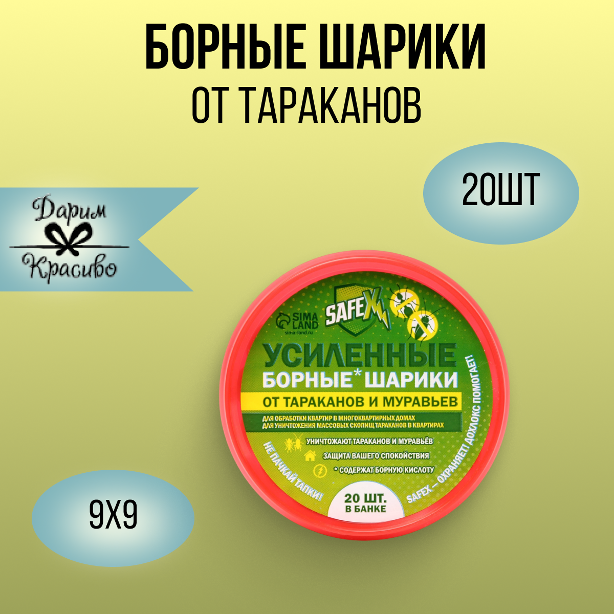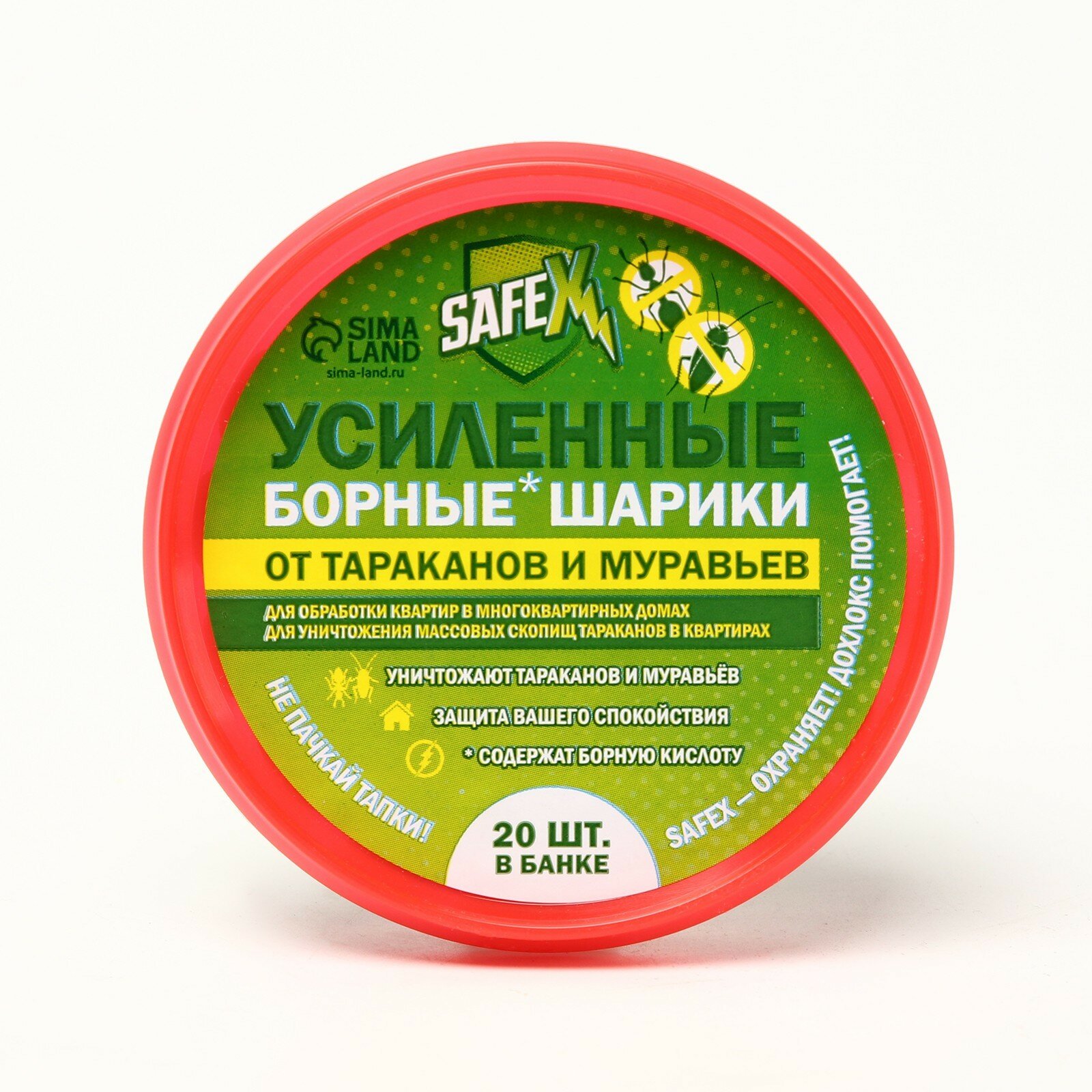 Борные шарики от тараканов и насекомых "SAFEX", усиленная формула, банка на 20 шт