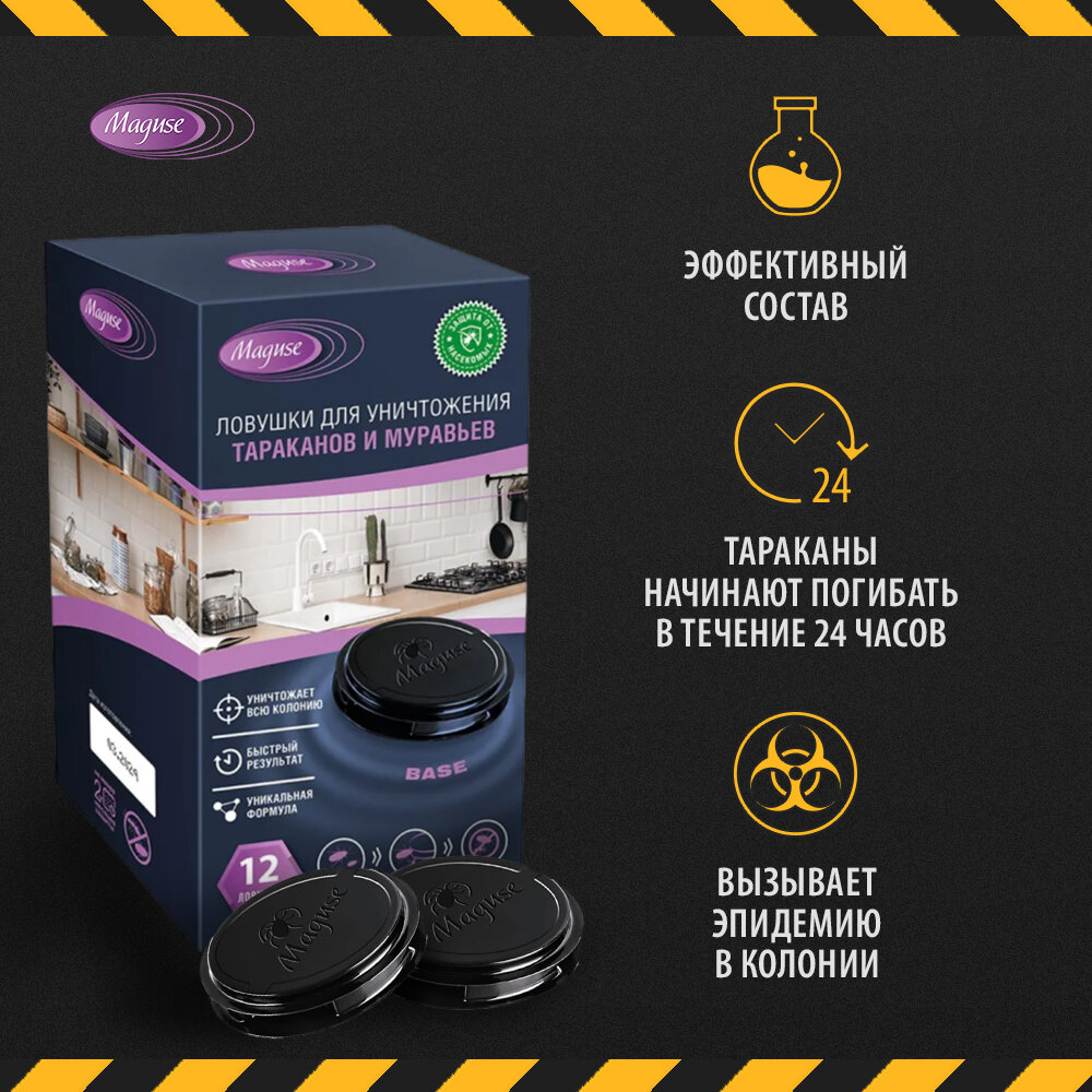 Средство от муравьев и тараканов Base MAGUSE с ловушками 12 штук