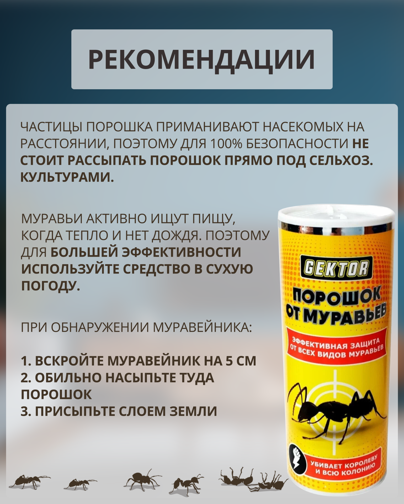 Порошок Gektor (Гектор) от муравьев, 300 г / Средство избавления от всех видов муравьев