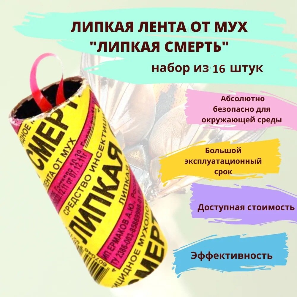 Лента липкая от мух "Липкая Смерть" 16 шт в упаковке; Лента липкая от насекомых интересное:
