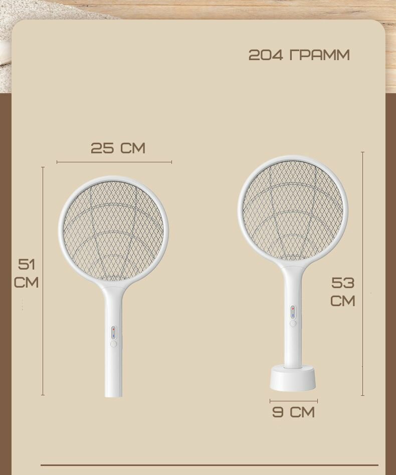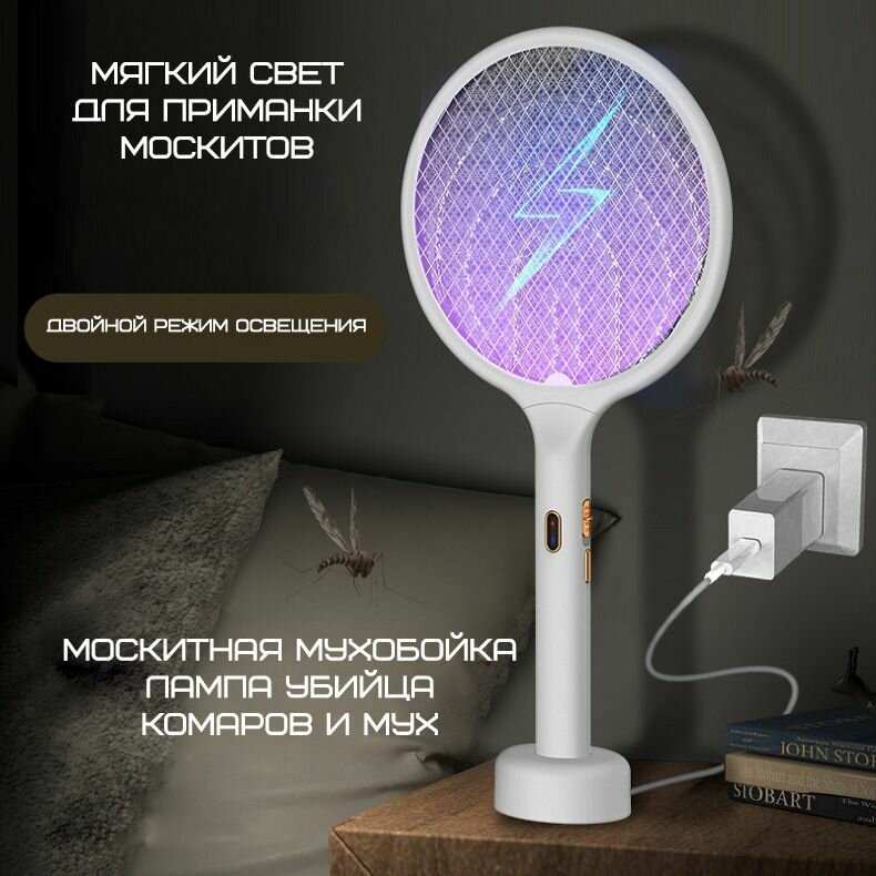Мухобойка электрическая с встроенным аккумулятором и зарядным кабелем USB, белый интересное: