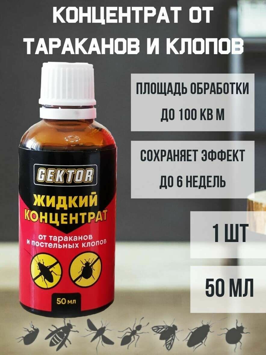 Средство от клопов и тараканов / Жидкий концентрат GEKTOR / гектор, 50 мл*1 шт интересное: