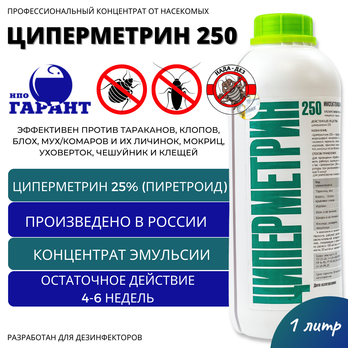 | Подробная комплектация | "Циперметрин250"Пластиковая бутылка 1л. 1шт. + подарок к каждому заказу. |