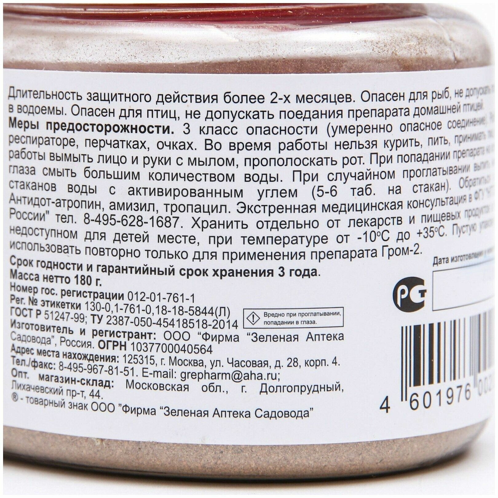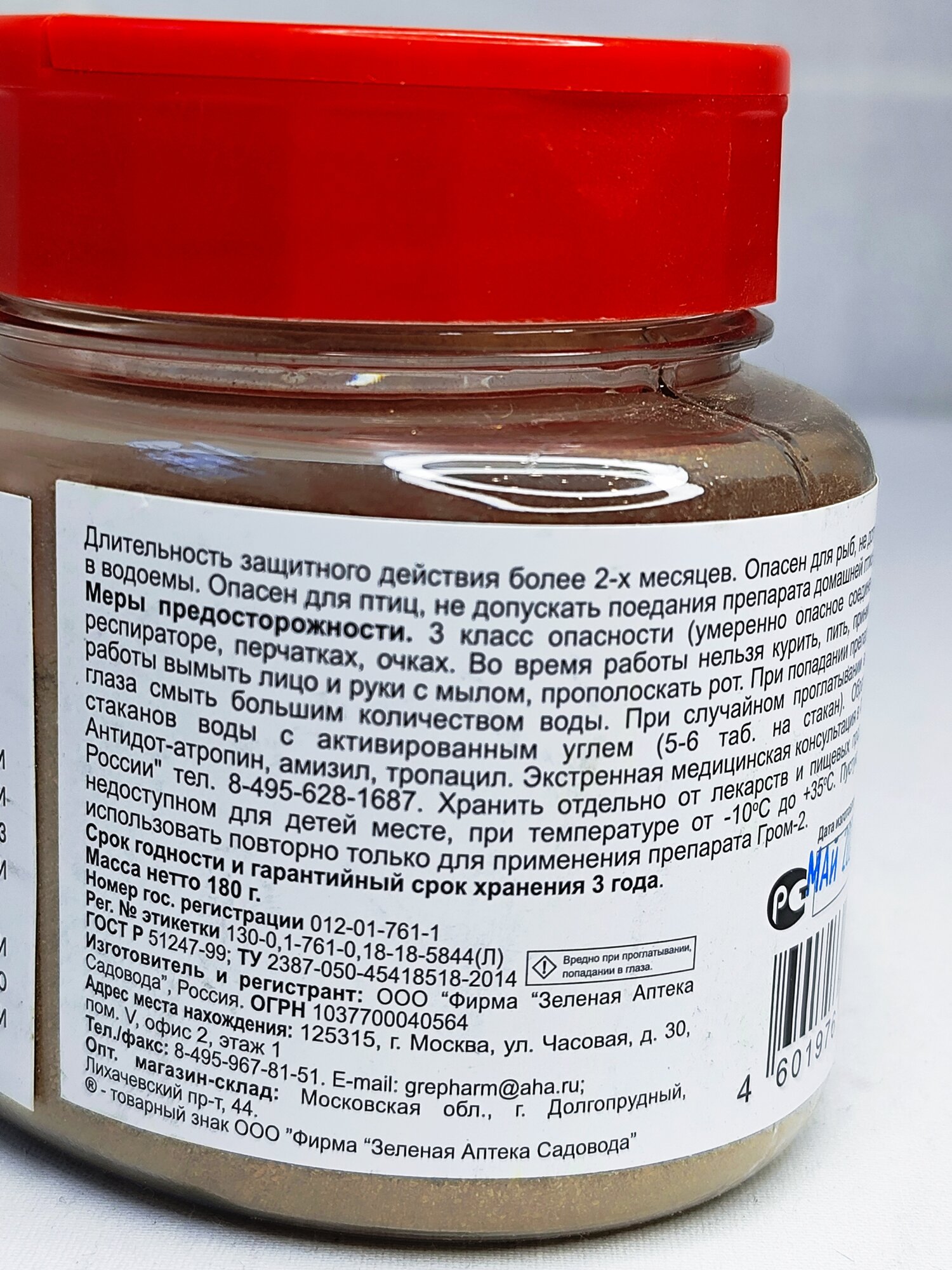 | Подробная комплектация | Инсектицид Гром 2 средство от садовых муравьев и мошек, 180 г. - 1 шт. На 90 кв.м. обработки |