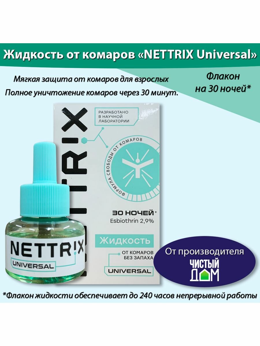 Жидкость от комаров NETTRIX Universal 30 ночей