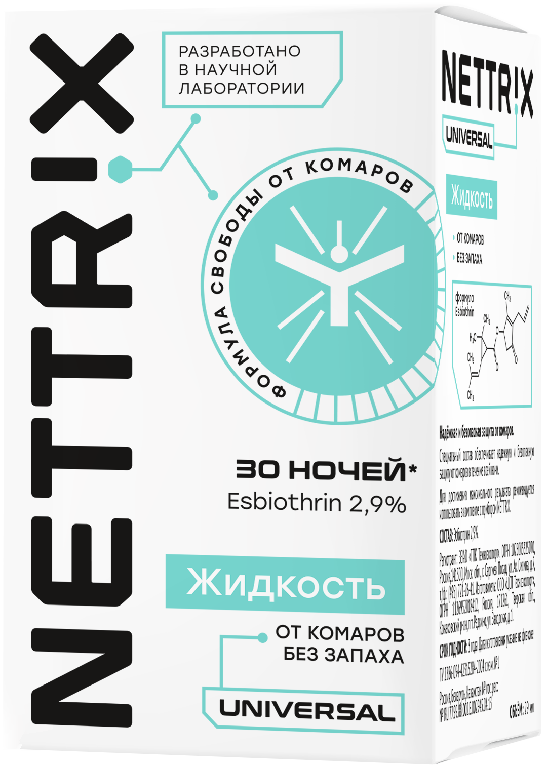 | Подробная комплектация | Жидкость от комаров NETTRIX без запаха 29 мл |