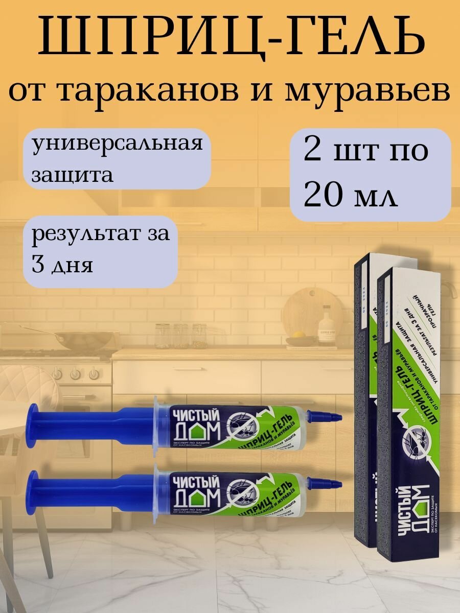 Гель Чистый дом шприц от тараканов и муравьёв, 20 г, 20 мл, прозрачный