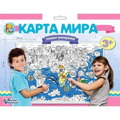 Плакат-раскраска "Карта мира"