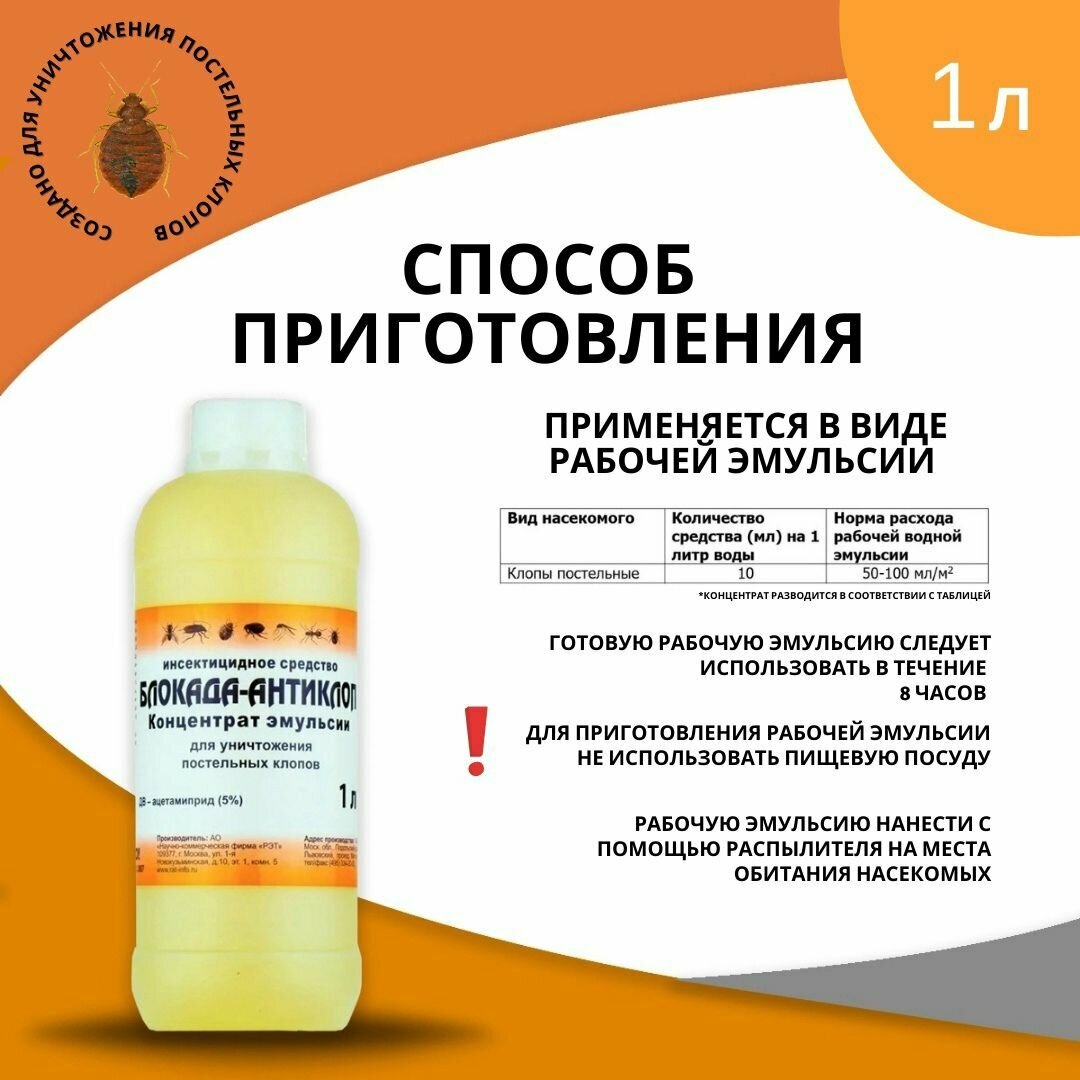 | Подробная комплектация | Средство от клопов - блокада антиклоп 1 литр |
