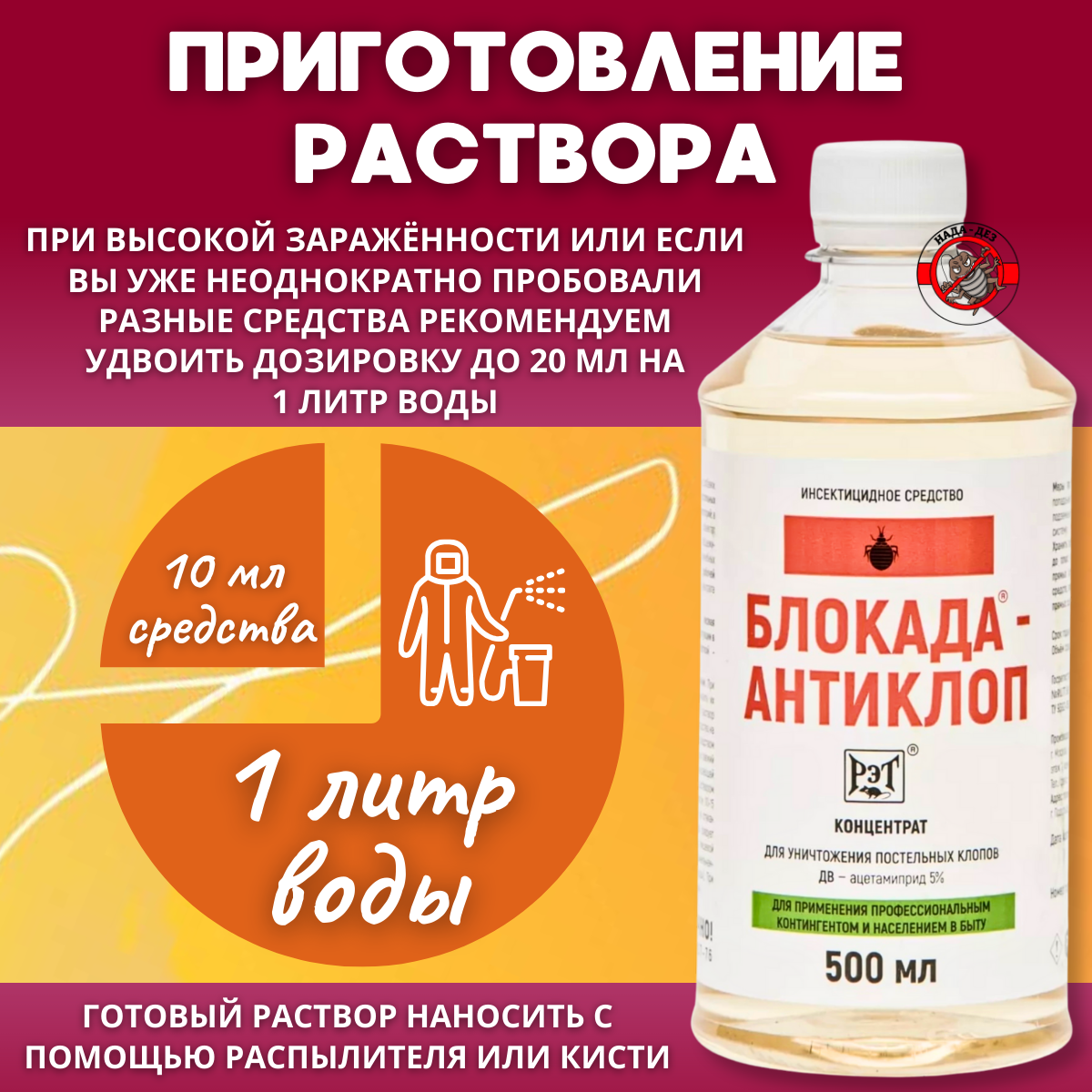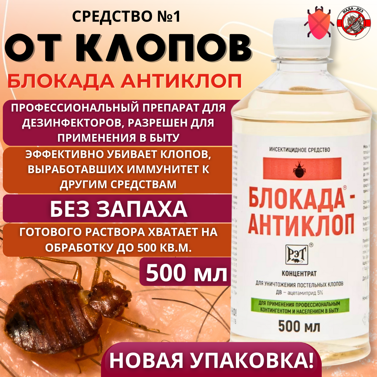СохранитьБлокада Антиклоп ВЭ 5% 500 мл средство от Постельных клопов, Тараканов, Муравьев, Блох интересное: