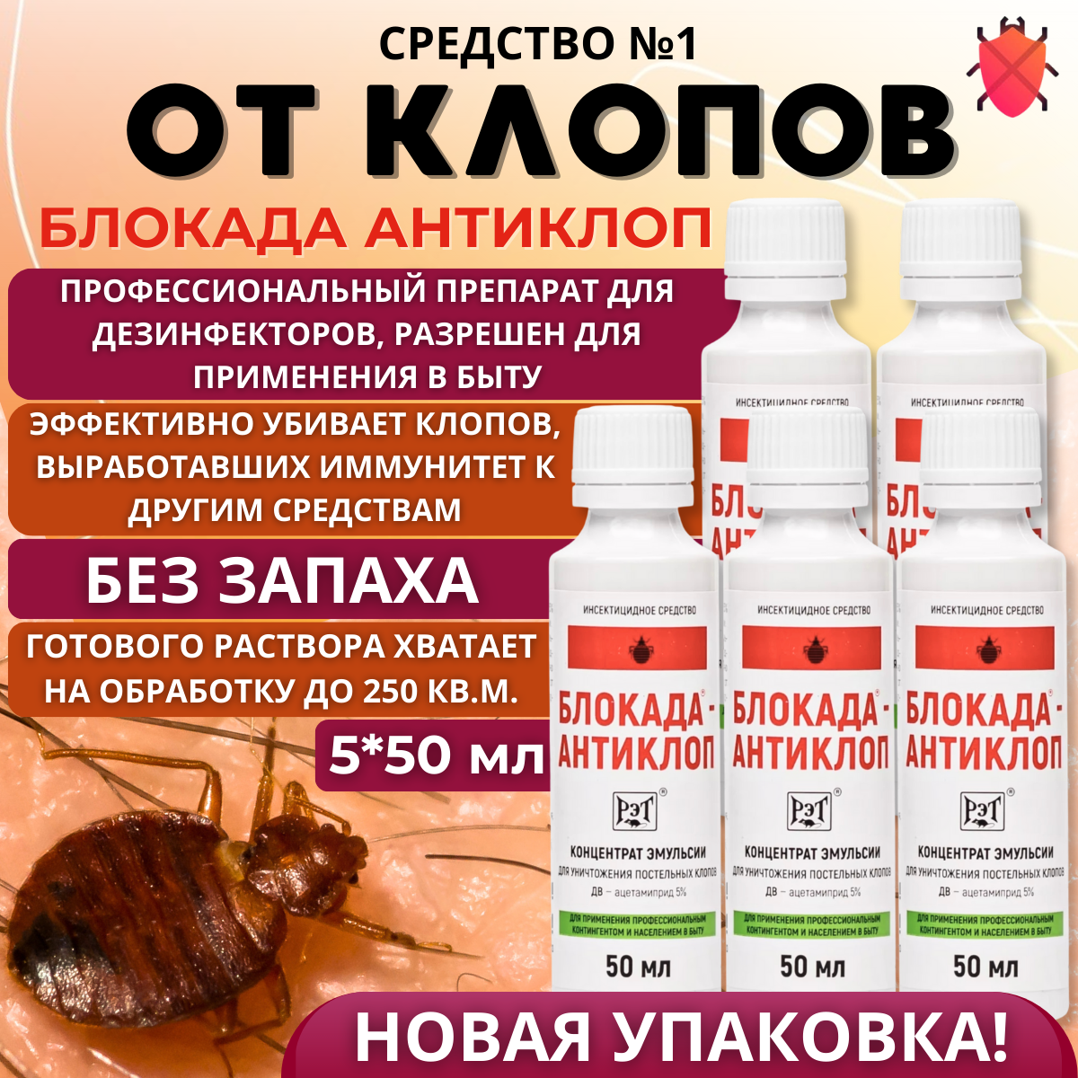 Ниже Вы можете прочитать отзывы на Блокада Антиклоп, средство от постельных клопов 5 шт по 50 мл, ознакомится с подробными характеристиками, посмотреть интересные обзоры и фотографии на Блокада Антиклоп, средство от постельных клопов 5 шт по 50 мл.