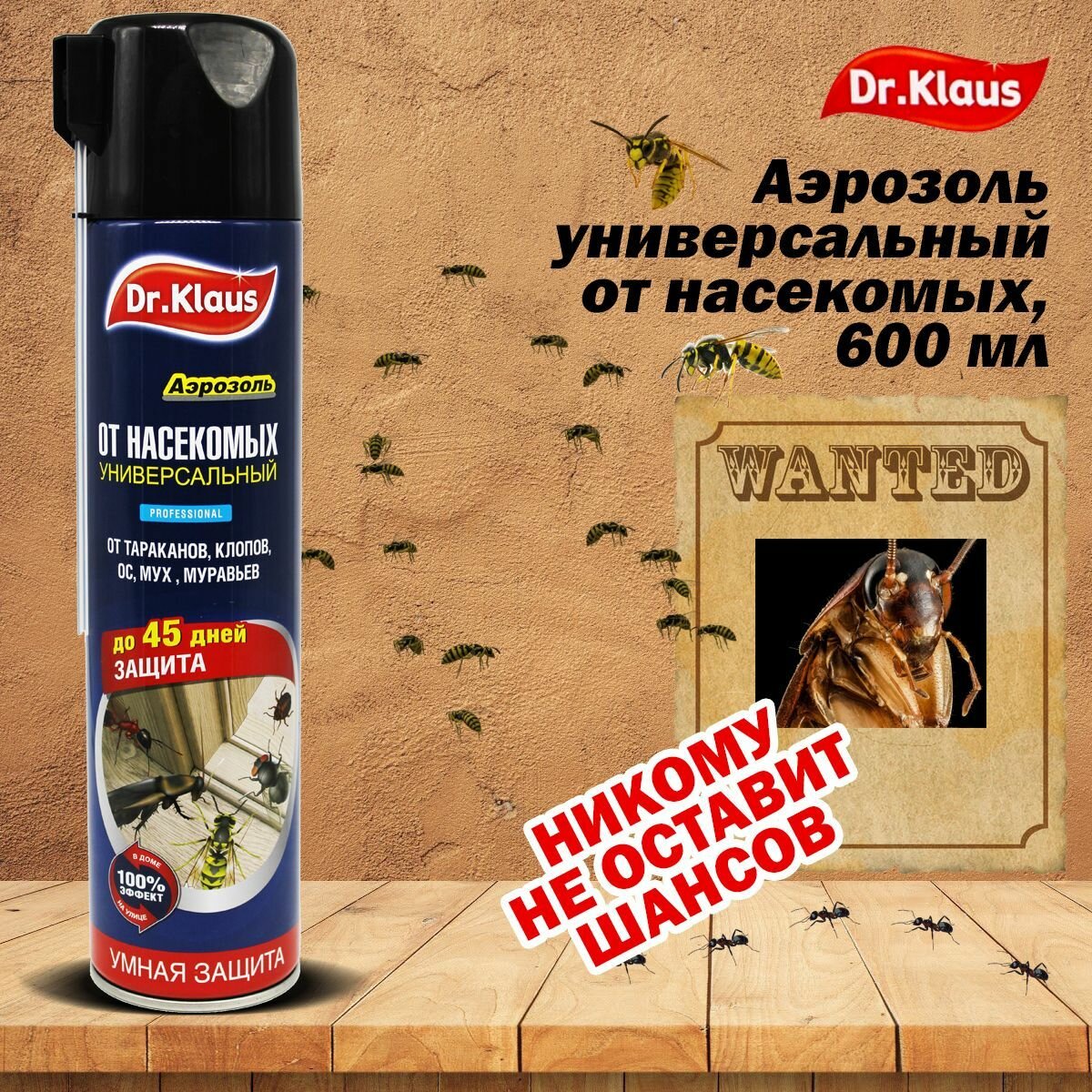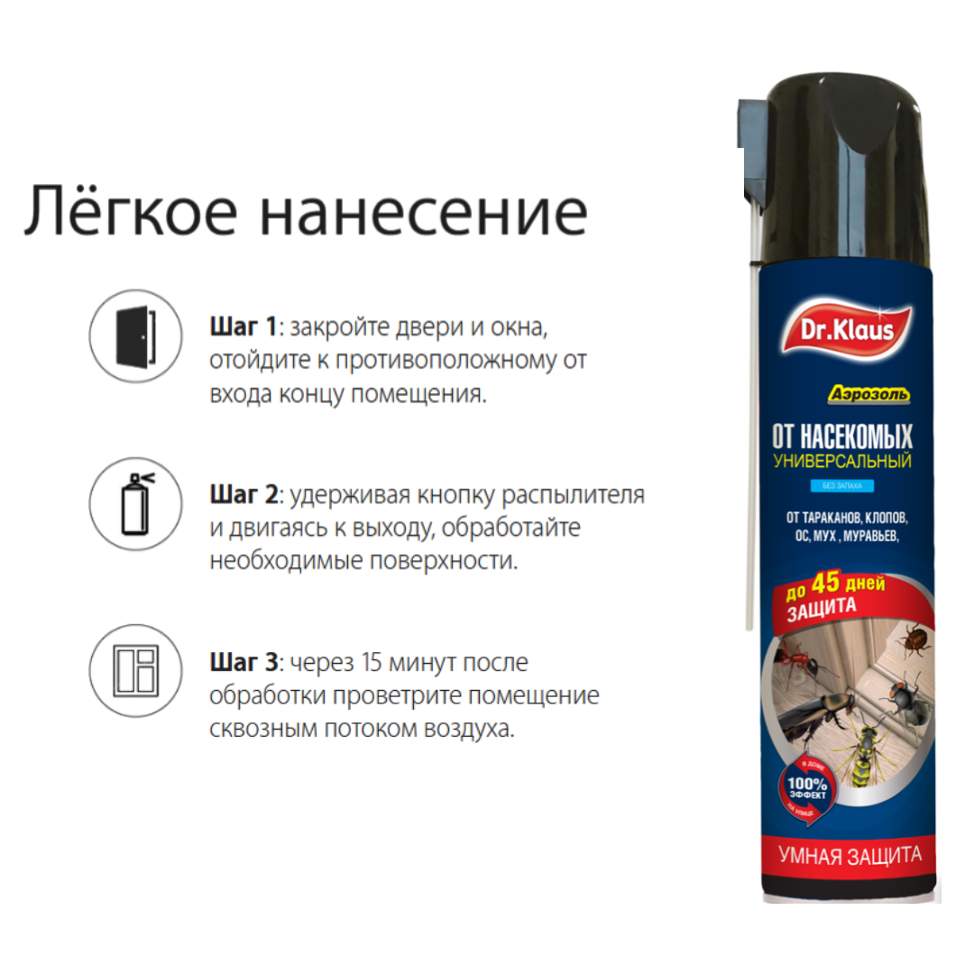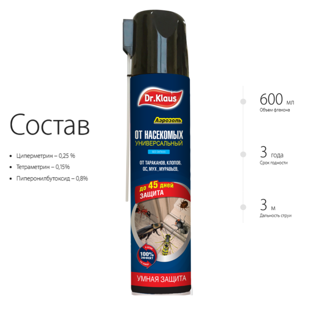 Аэрозоль DR. KLAUS универсальный (от тараканов, муравьев, мух, ос и др. насекомых), 567 г, 600 мл интересное: