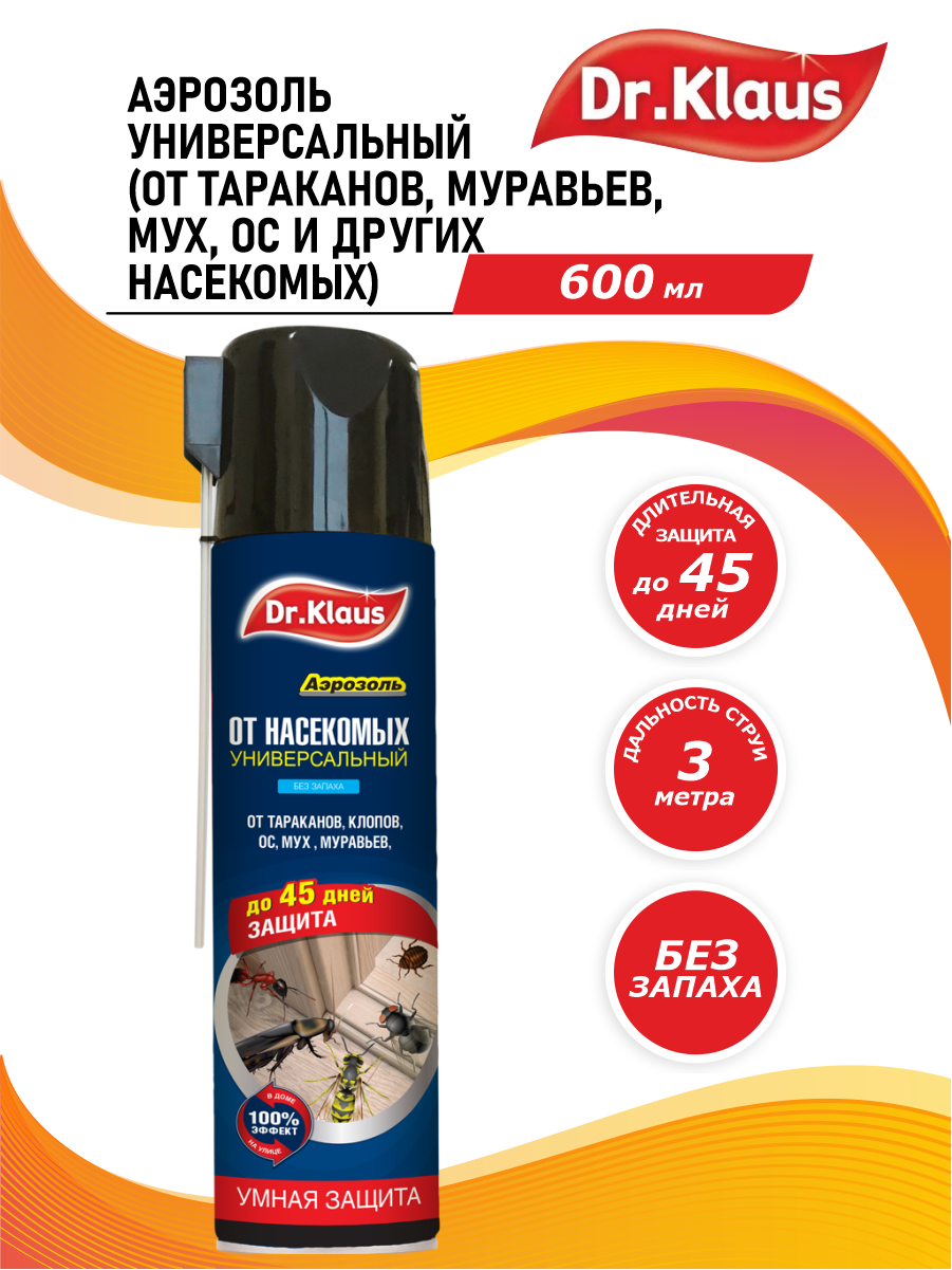 Dr.Klaus Аэрозоль универсальный от тараканов, муравьев, мух, ос и др. насекомых, баллон 600 мл- 2 шт