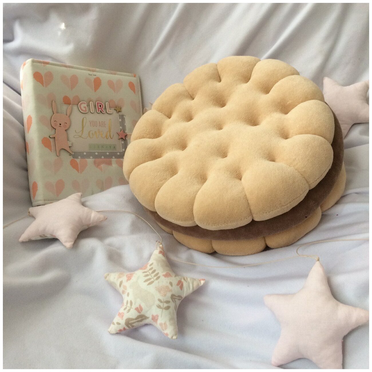 Декоративная подушка Baby.Eco.Decor `Печенье с кремом` Дизайнерская `Печенька` пудра