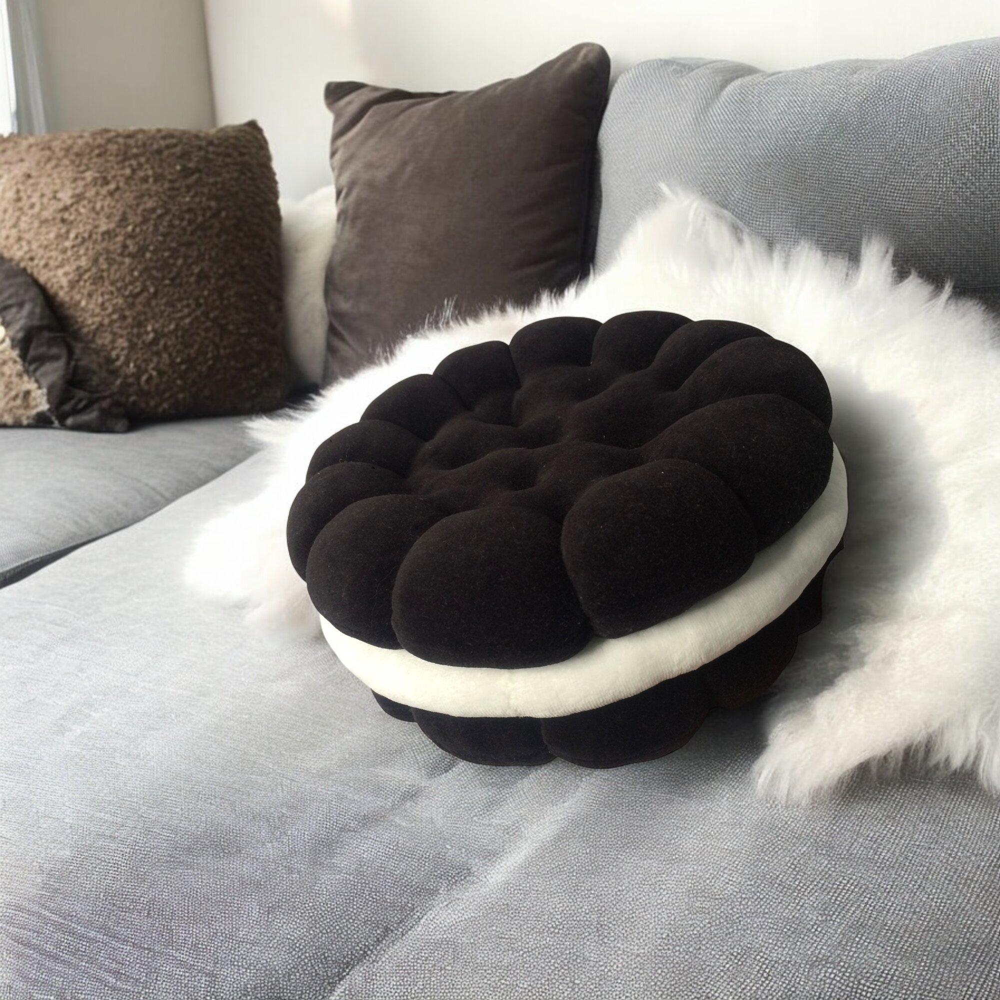 Купить Декоративная подушка Baby.Eco.Decor `Печенье с кремом` Дизайнерская `Печенька` чёрная