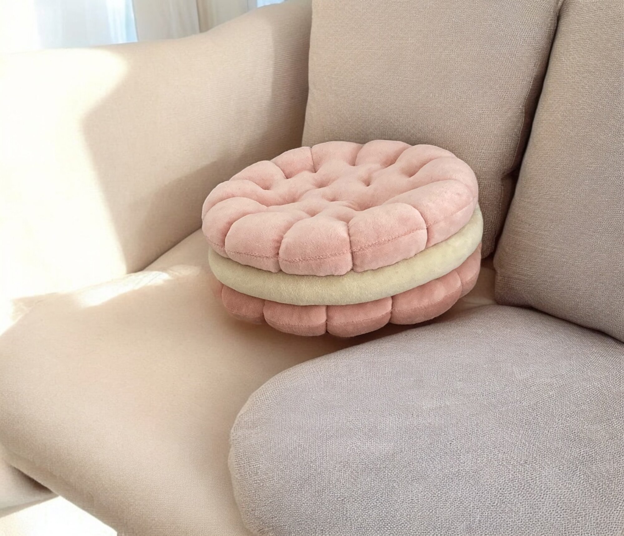 Купить Декоративная подушка Baby.Eco.Decor `Печенье с кремом` Дизайнерская `Печенька` пудра