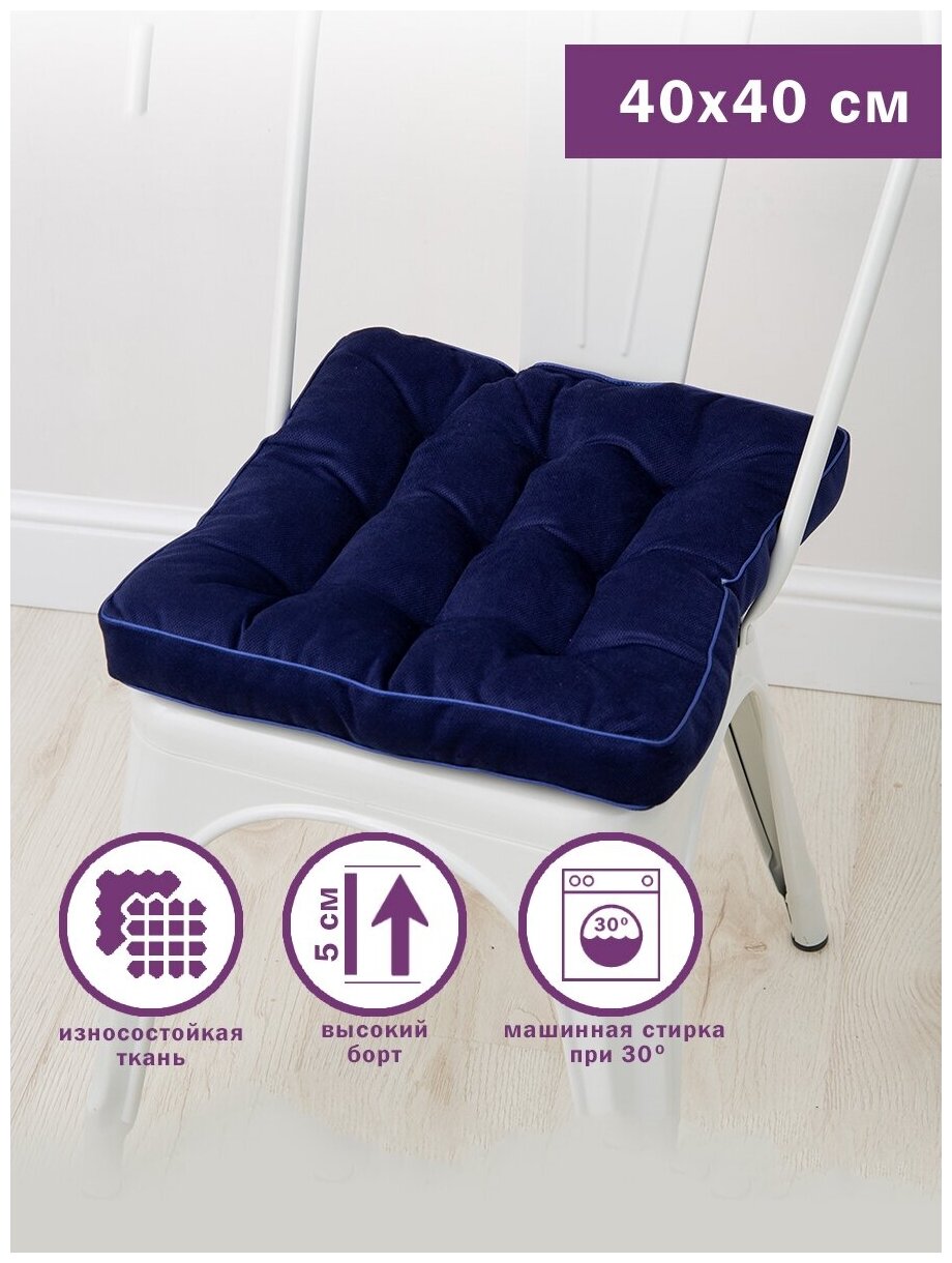 Купить Подушка на стул Bio-Line /Декоративная подушка/Сидушка высоким бортом/Табуретник/Квадратная/40х40 см/индиго
