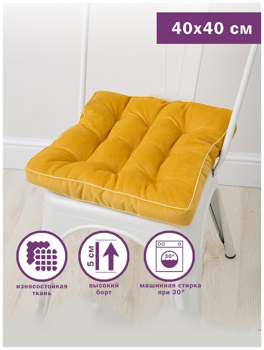 Купить Подушка на стул Bio-Line /Декоративная подушка/Сидушка высоким бортом/Табуретник/Квадратная/40х40 см/желтый