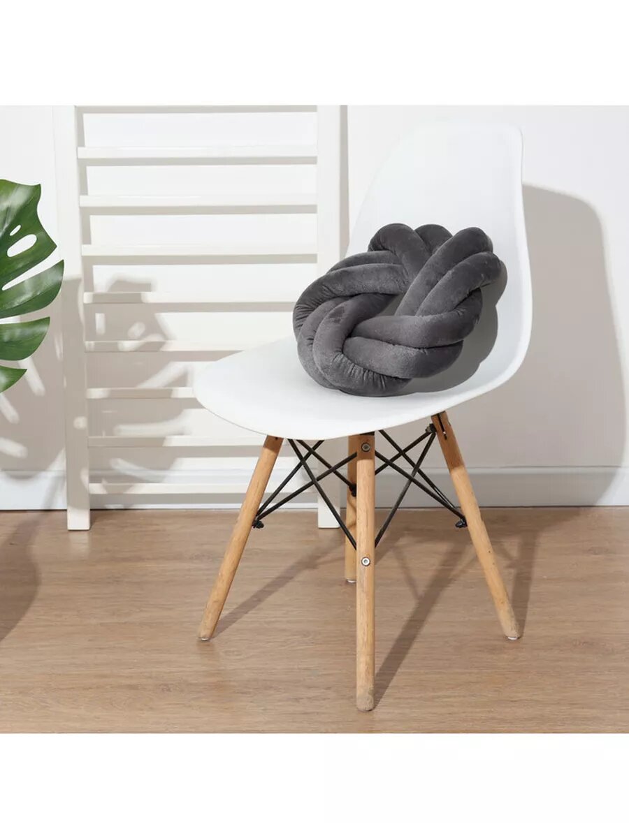 Подушка-узел d=33см, цвет тёмно-серый, велюр