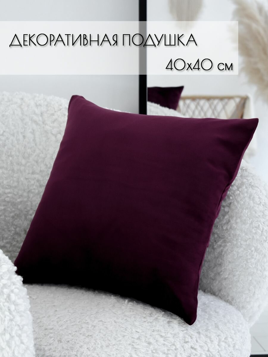 Подушка декоративная 40 на 40 см на диван, кровать, подоконник, на кресло, на качели, в салон, сливовый