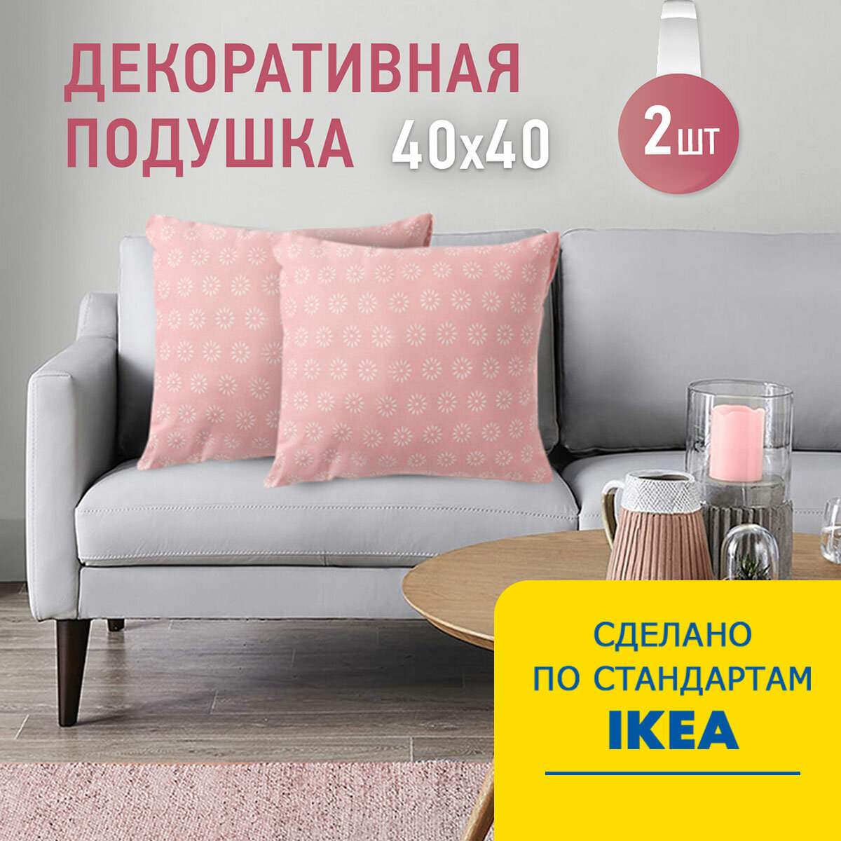 Комплект декоративных подушек Ol-Tex Карлесграс 40x40 см. (2 шт.) розовый / Набор из 2х подушек Ол-Текс Карлесграс 40 x 40 см.