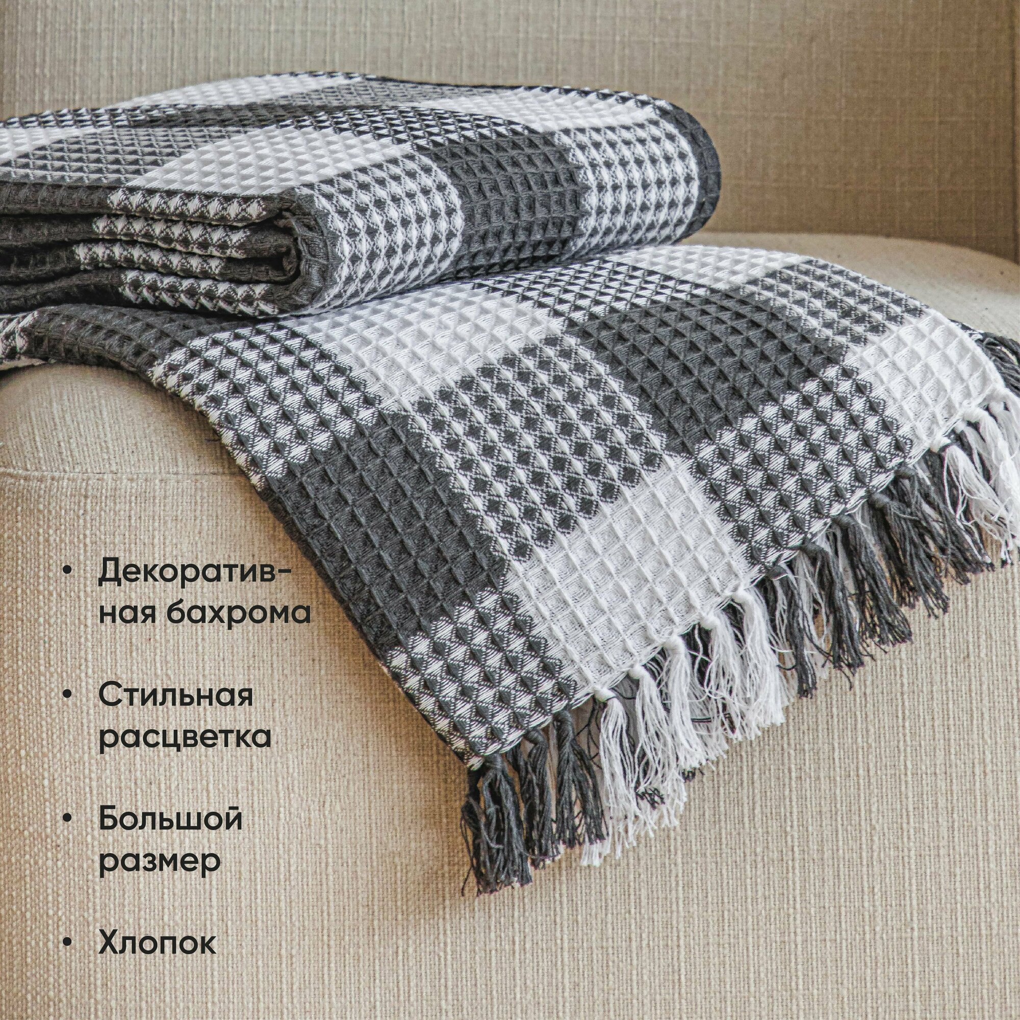 PROVANCE Плед хлопок, 200х220см, серый интересное: