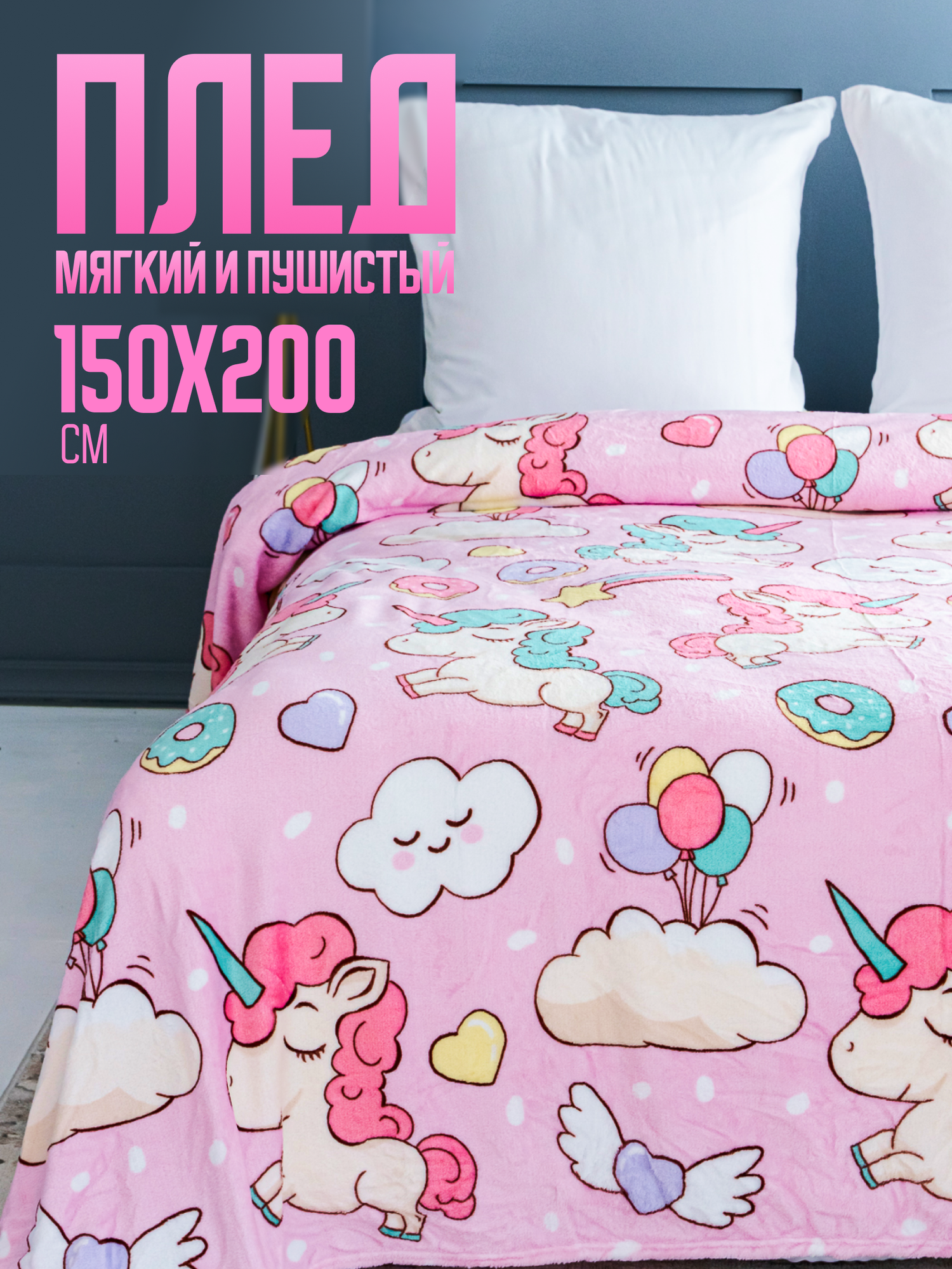 Плед Павлинка Единороги 150х200см, розовый, аэрософт, 190г/м, пэ100% интересное: