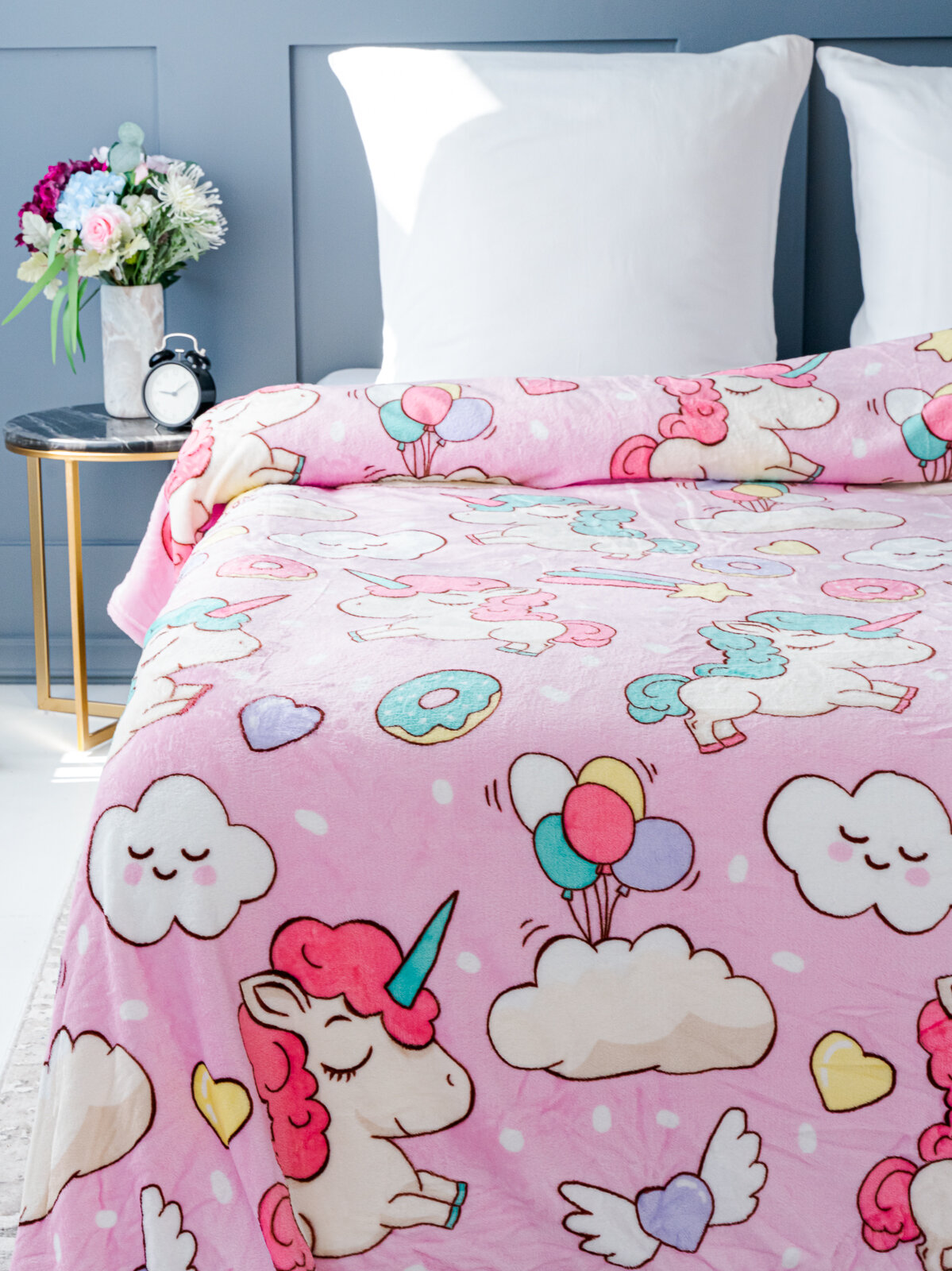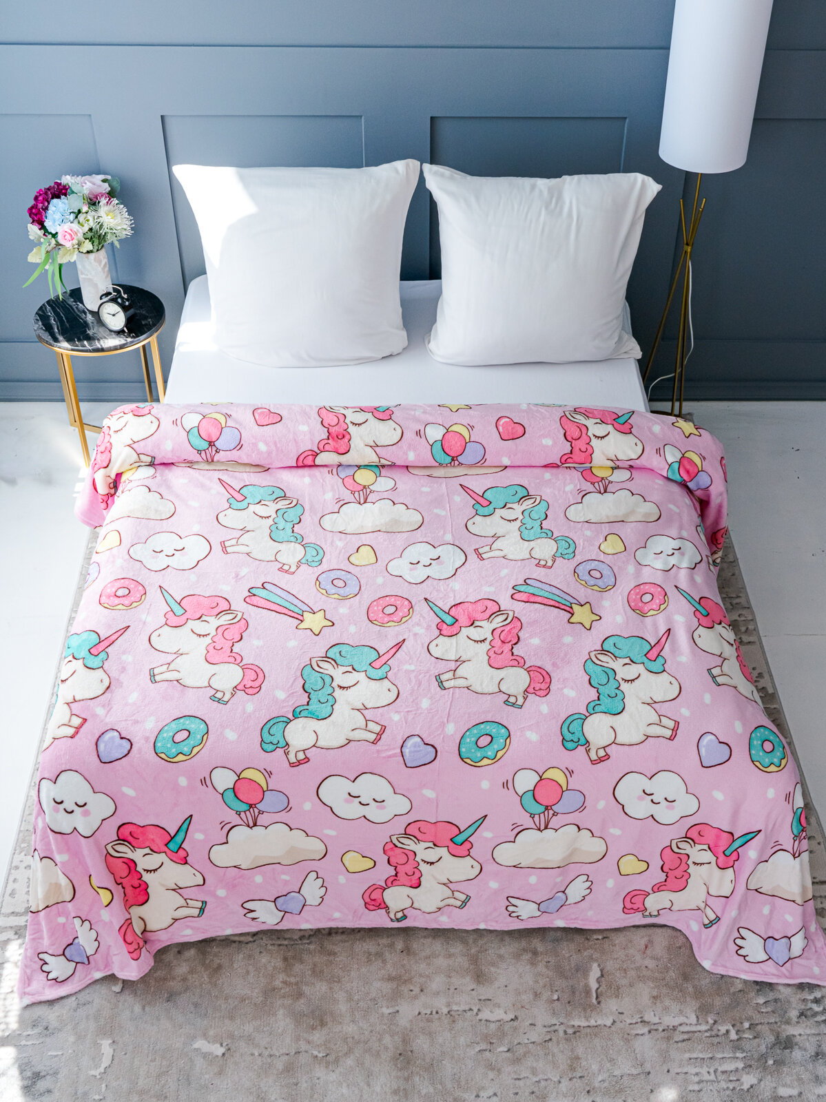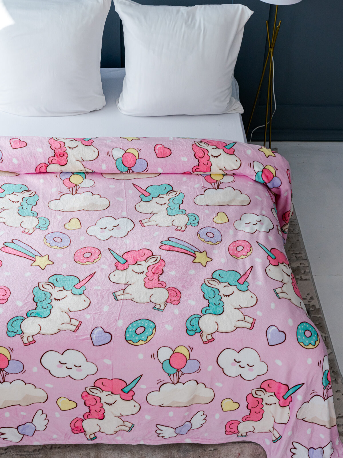 Плед Павлинка Единороги 150х200см, розовый, аэрософт, 190г/м, пэ100%