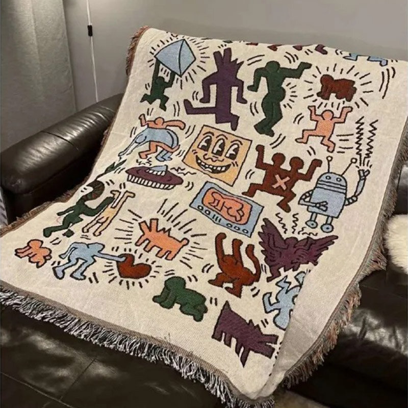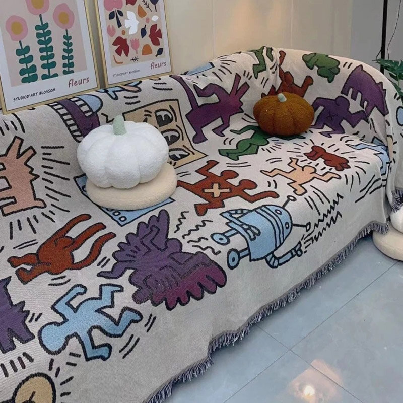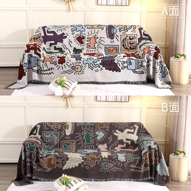 Покрывало на диван, коврик для пикника, кресло, одеяло хлопковое, Современное покрывало для дивана в стиле Ins с граффити, размер 90/180 интересное:
