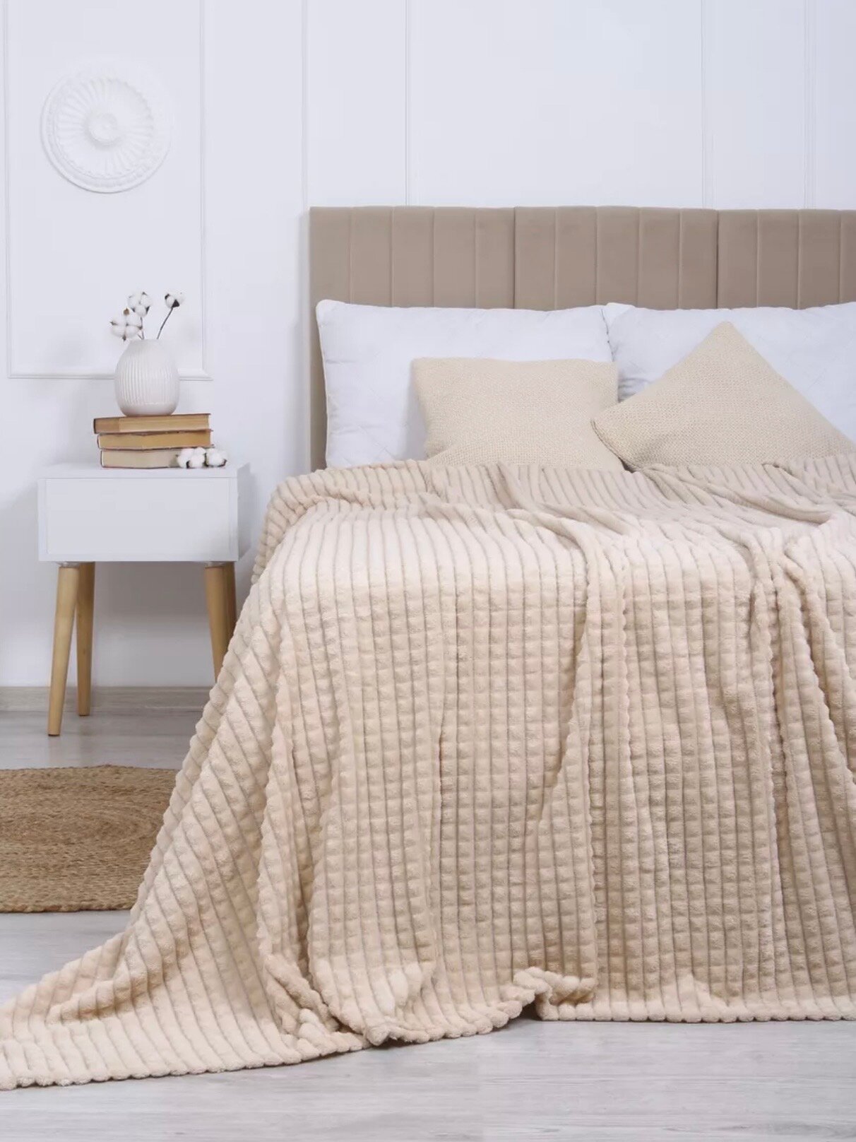 Пушистый Плед покрывало Велсофт Евро 200×220, накидка на кровать, бежевый