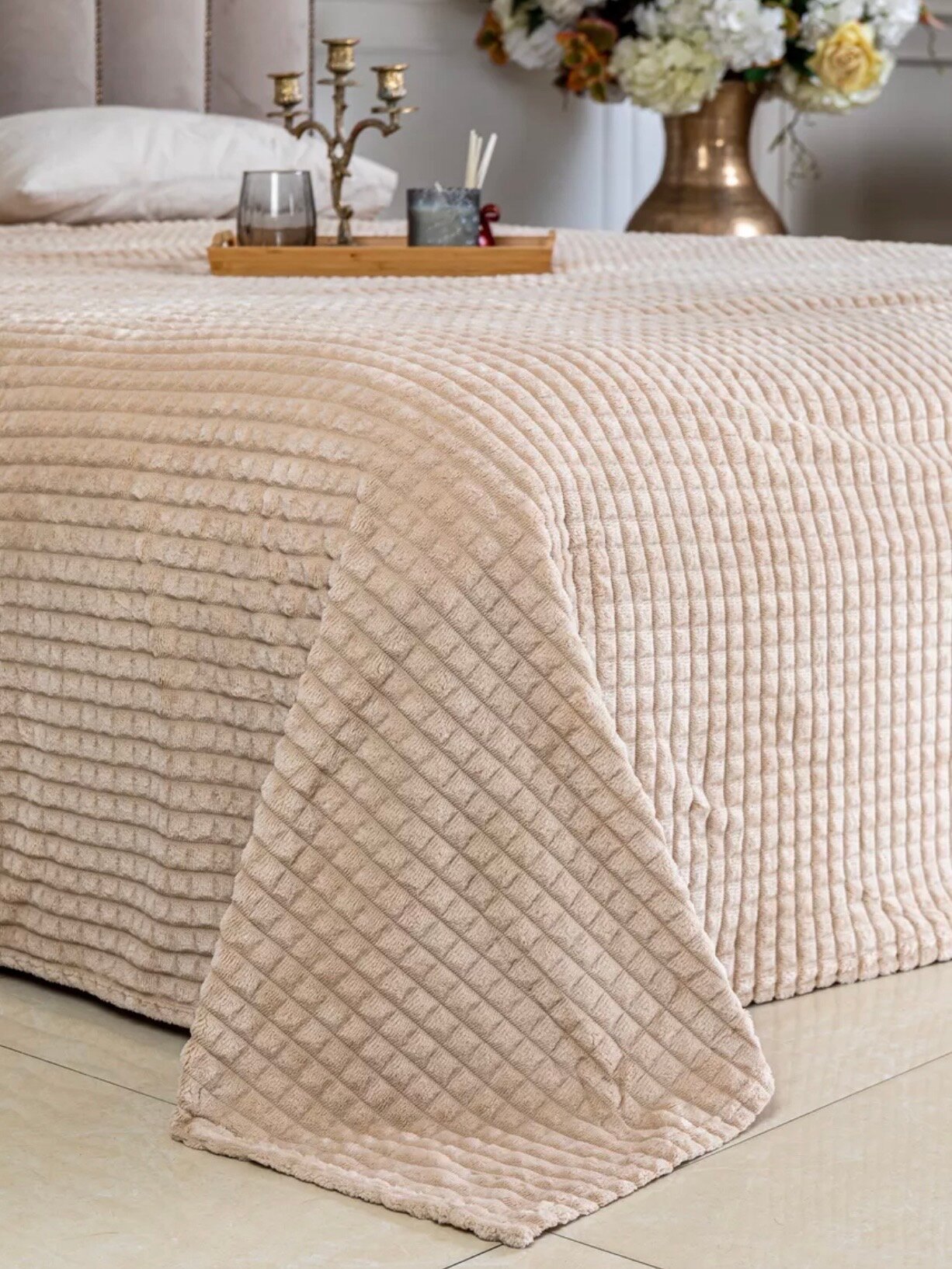 Пушистый Плед покрывало Велсофт кубик Евро 200х220, накидка на кровать,шампань молочный