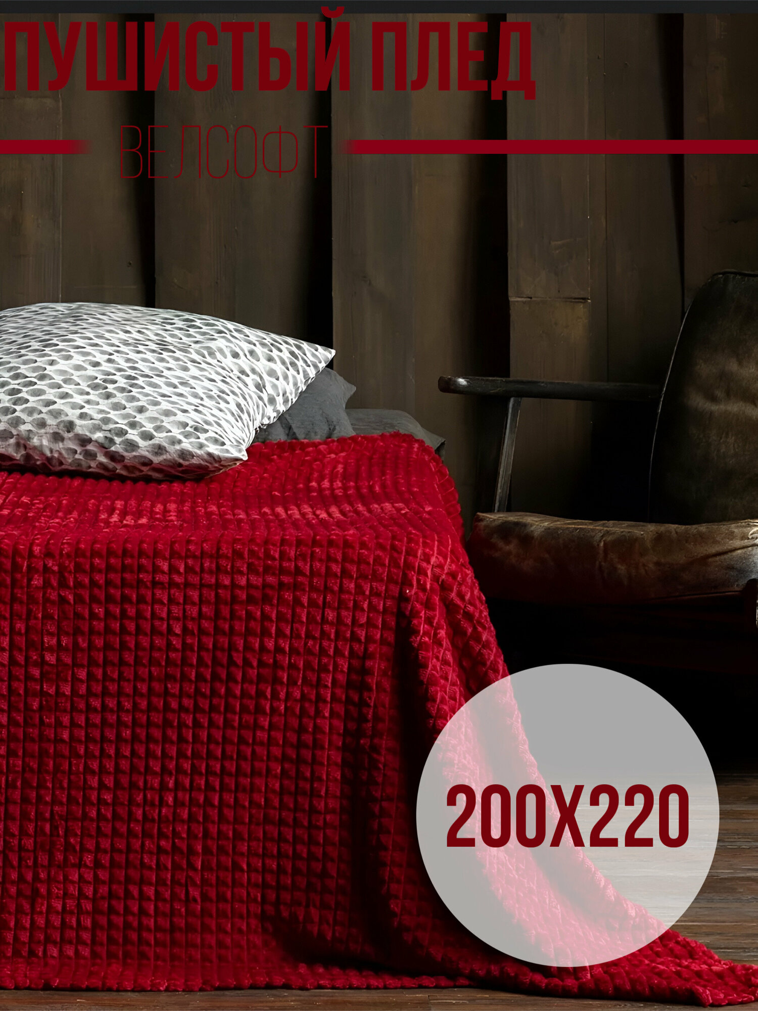 СохранитьПушистый Плед покрывало Велсофт кубик Евро 200х220, накидка на кровать, ярко красный интересное: