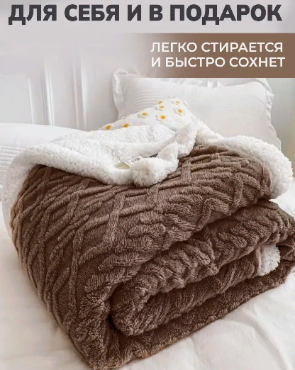 СохранитьПлед 200*230 Евро, Плед Овечка плюшевый теплый двусторонний с декором под вязаные узоры, плед - одеяло, плед для дивана , Покрывало на кровать, коричневый интересное: