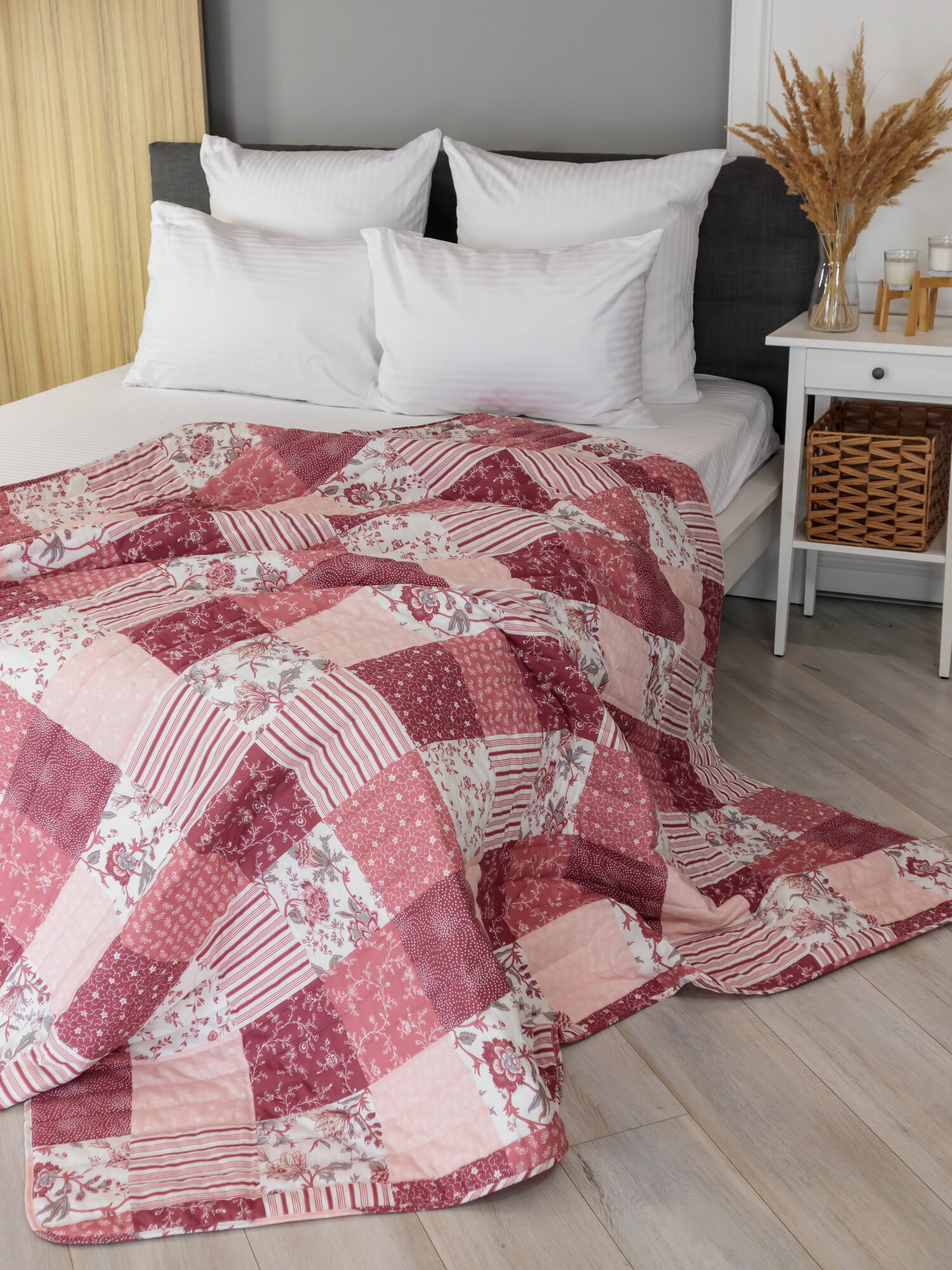 Покрывало 150х200, стеганное, хлопок белый-розовый интересное: