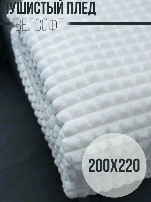 Купить Пушистый Плед покрывало Велсофт кубик Евро 200х220, накидка на кровать, Белый