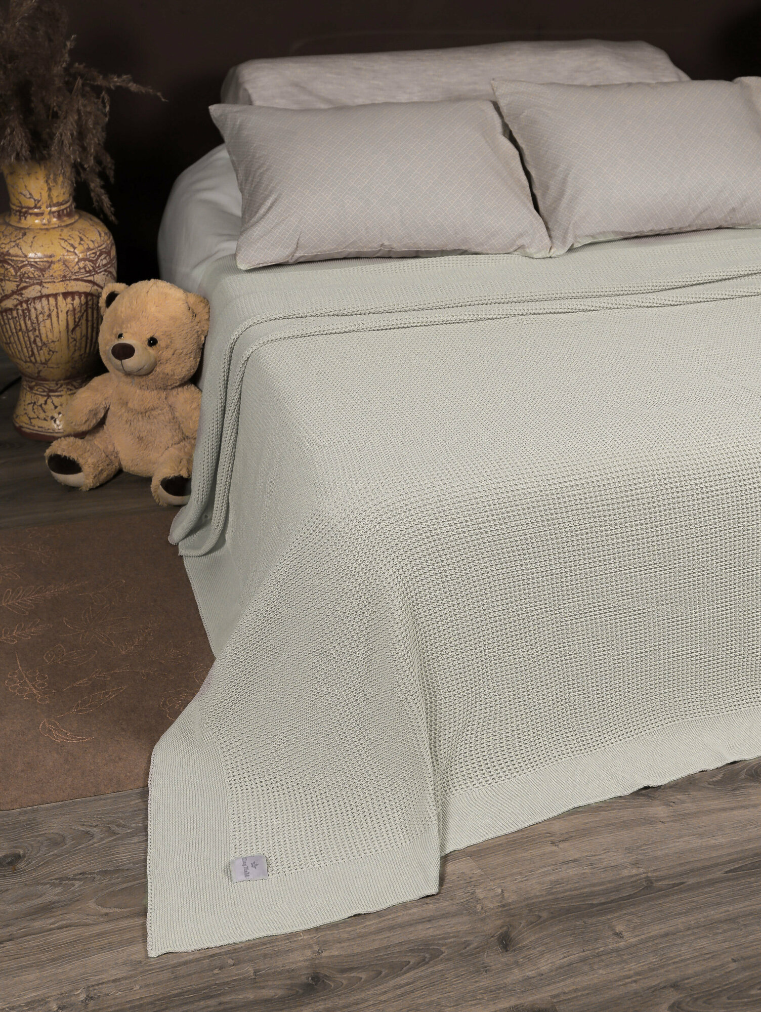 Плед 120x220, вязаный, детский, KING PLAID, зеленый, хлопок, покрывало на кровать, на диван, на кресло, в подарочной сумке