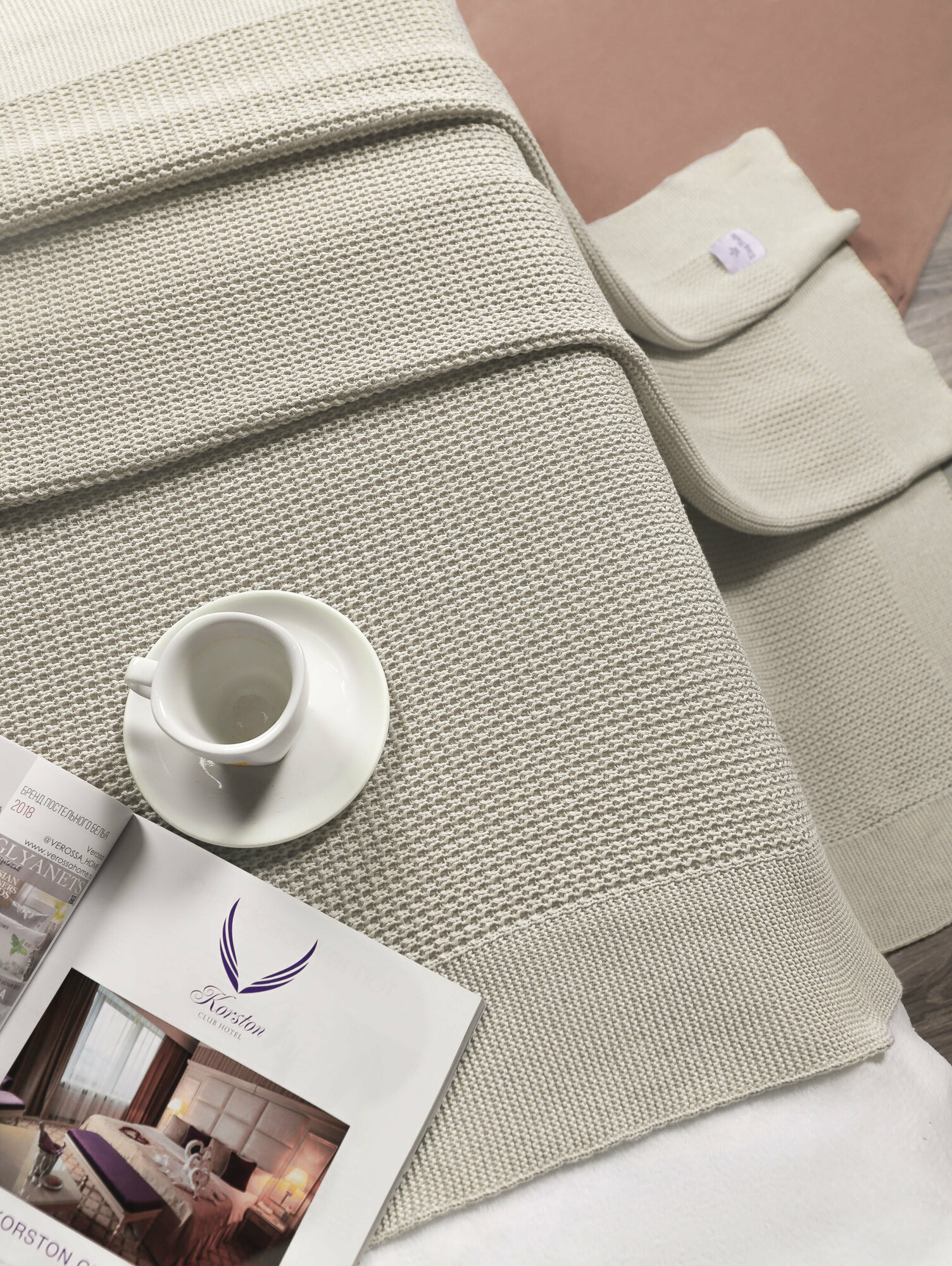 СохранитьПлед 240x260, вязаный, KING PLAID, светло-бежевый, хлопок, покрывало на кровать, на диван, на кресло, в подарочной сумке интересное: