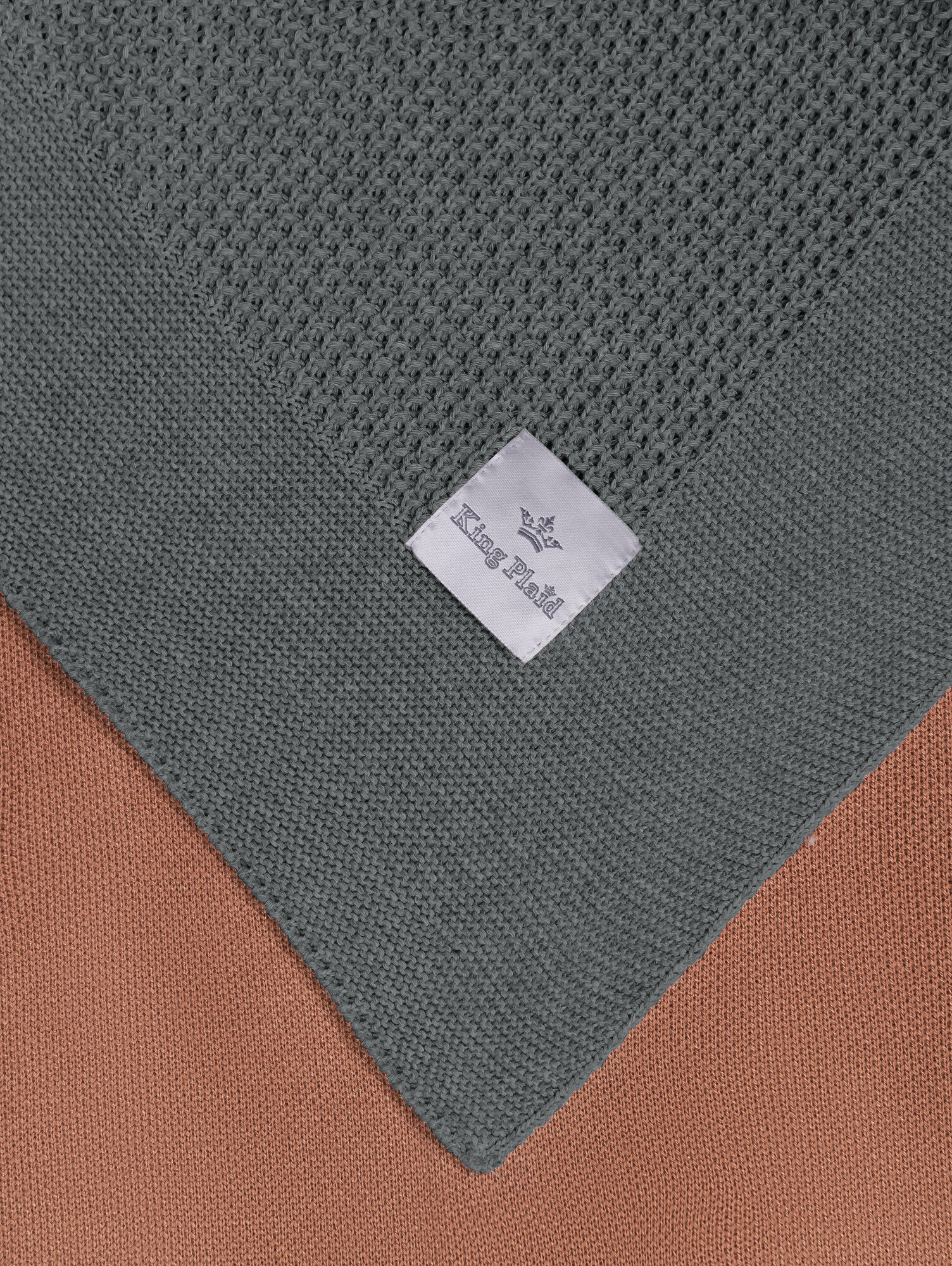 Плед 160x220, вязаный, KING PLAID, серый, хлопок, покрывало на кровать, на диван, на кресло, в подарочной сумке