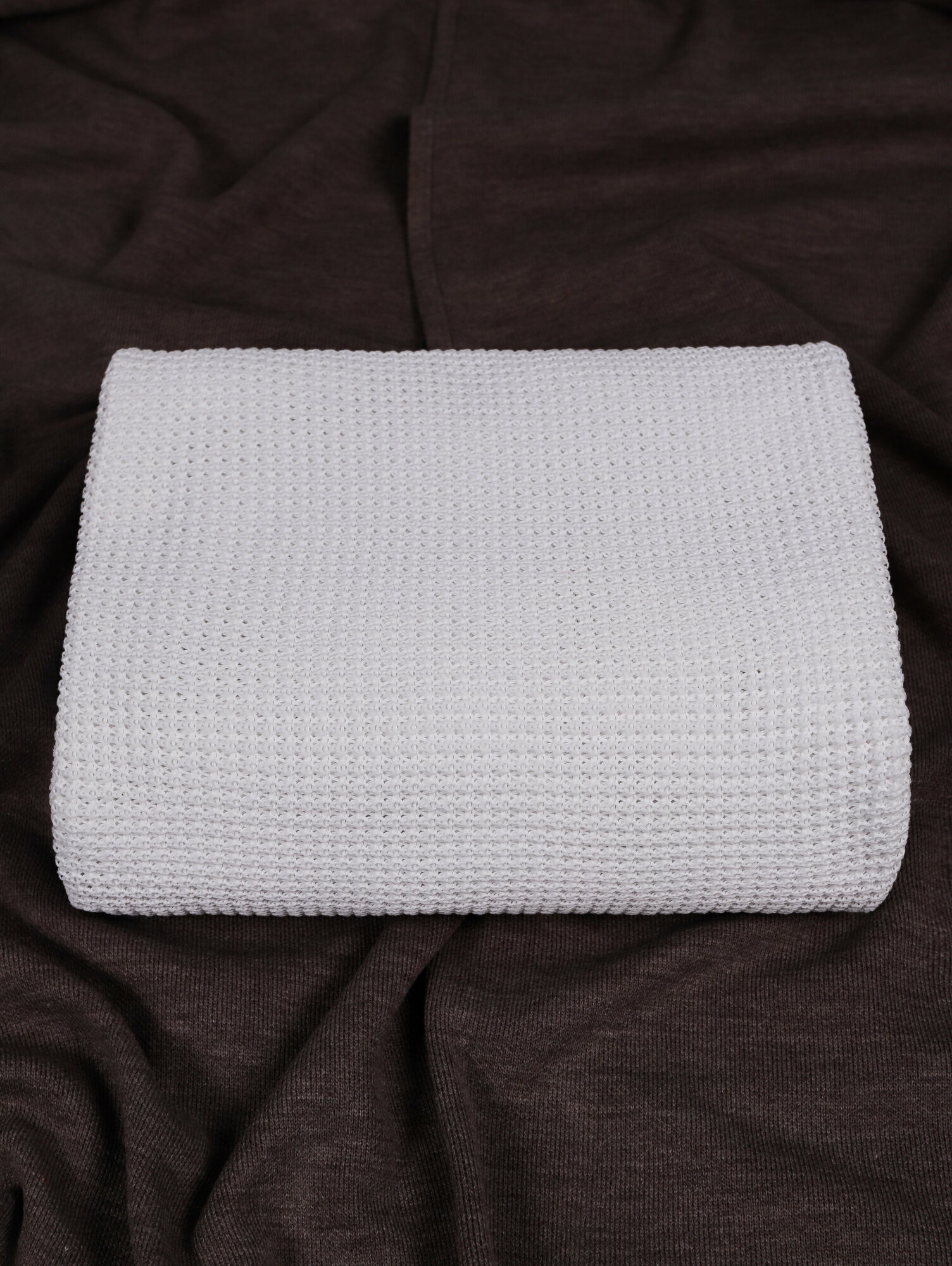 Плед 160x220, вязаный, KING PLAID, светло-серый, хлопок, покрывало на кровать, на диван, на кресло, в подарочной сумке