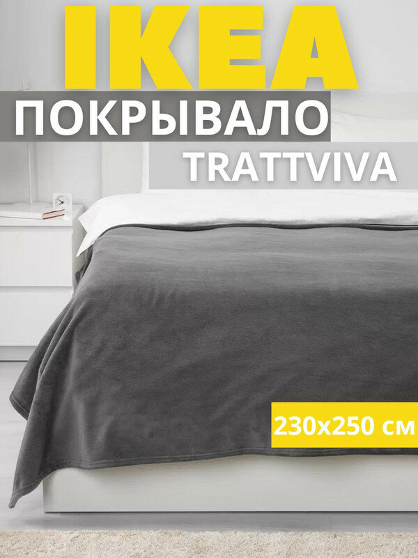 Покрывало-плед на кровать, диван, 230х250 см, серый ТРАТТВИВА ИКЕА