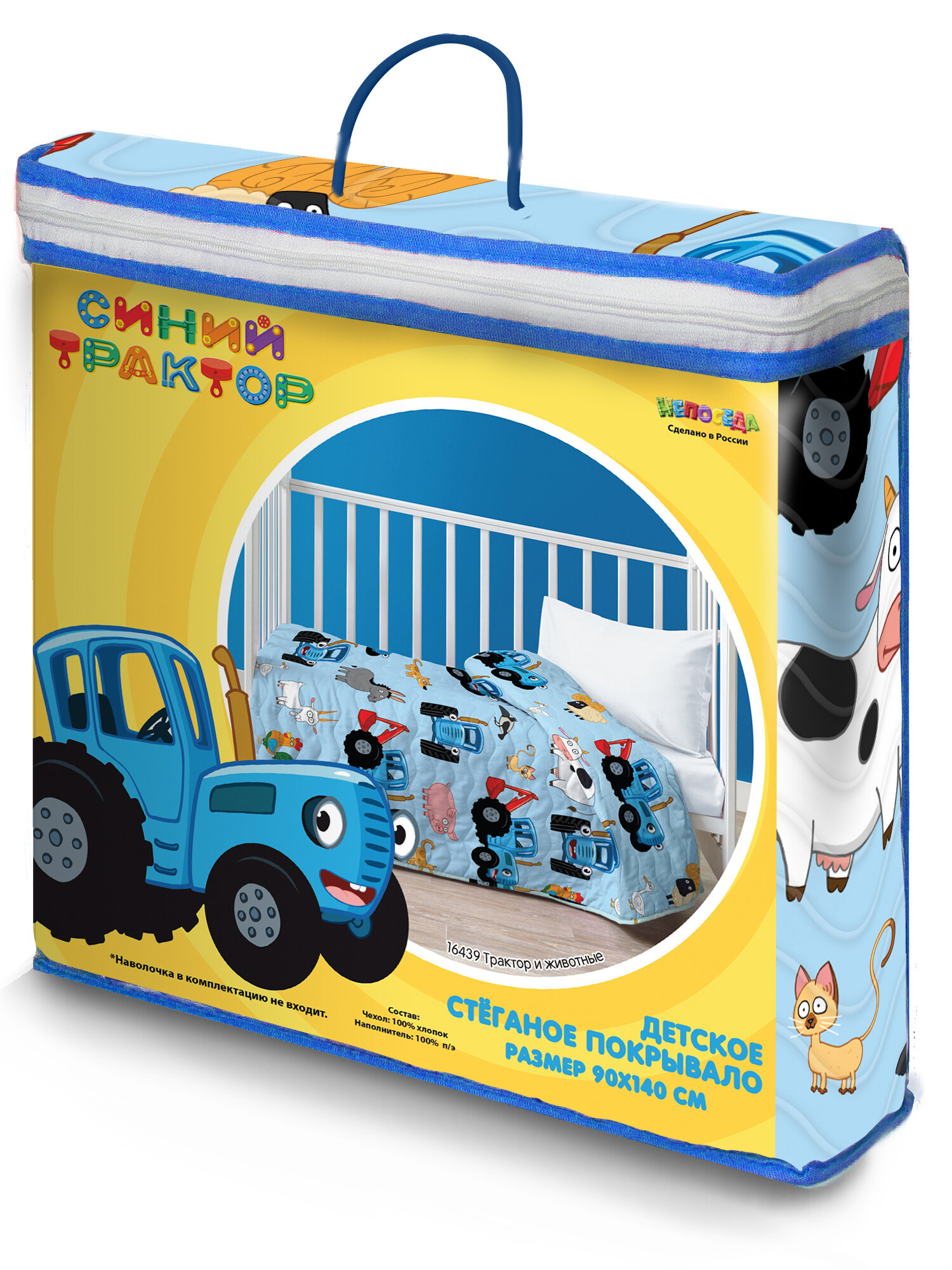 СохранитьДетское стеганное покрывало / покрывало на кровать / десткое покрывало / покрывало на детскую кровать "Непоседа" 90х140, "Синий трактор" Трактор и животные интересное: