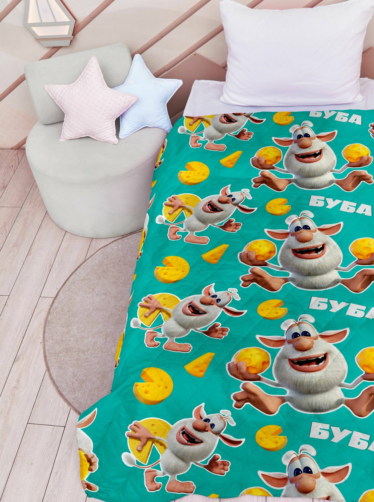 Покрывало на кровать стеганое 145х200 неон, Буба Сырная вечеринка 16745-1 интересное: