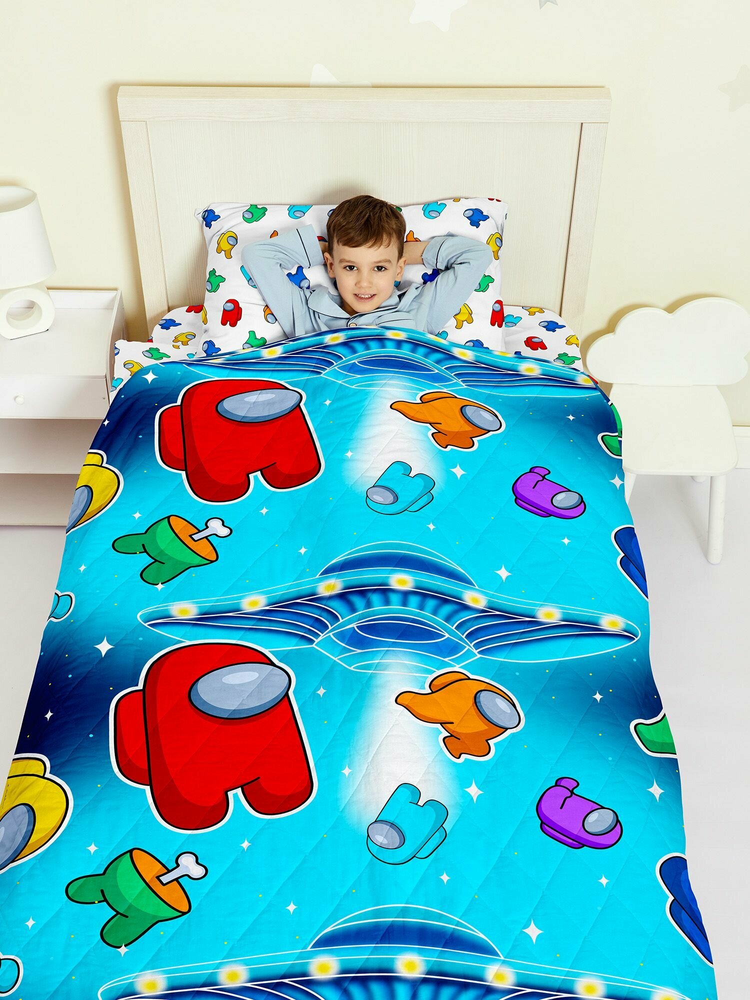 Покрывало на кровать детское 145х200 "Juno" неон Амонг Ас 16489-1 интересное: