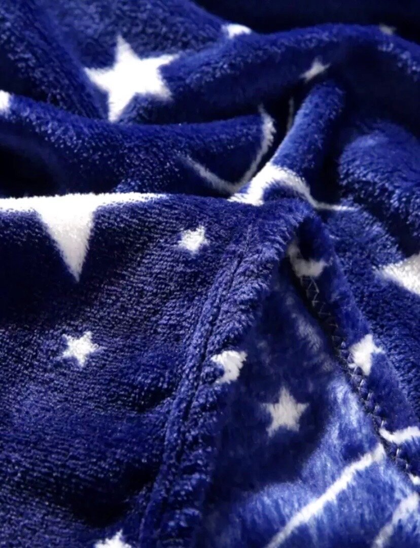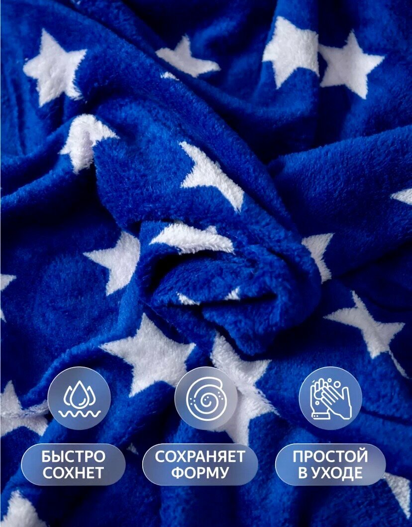| Подробная комплектация | Плед покрывало CRAZYme синий со звездами 180х200 см в полипропиленовом пакете. |