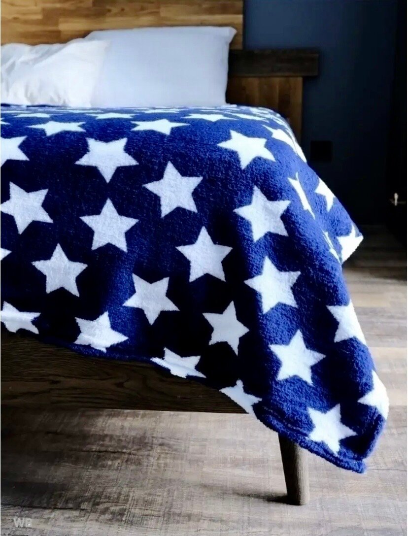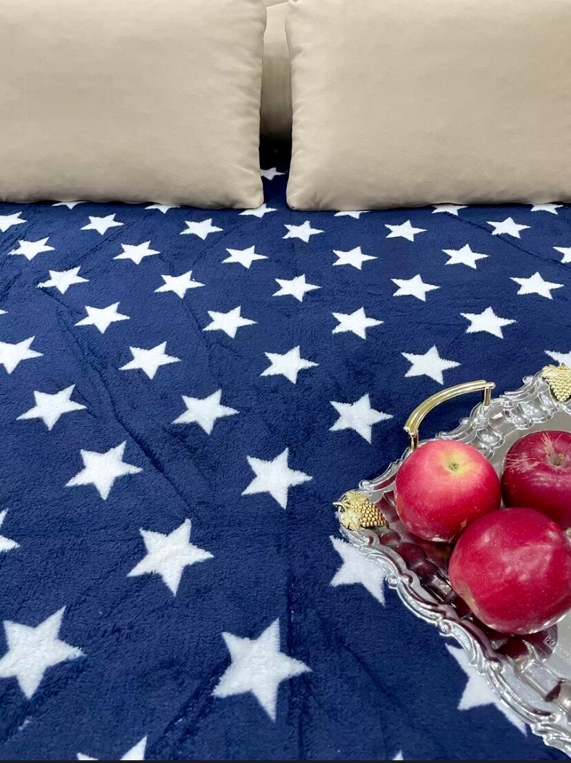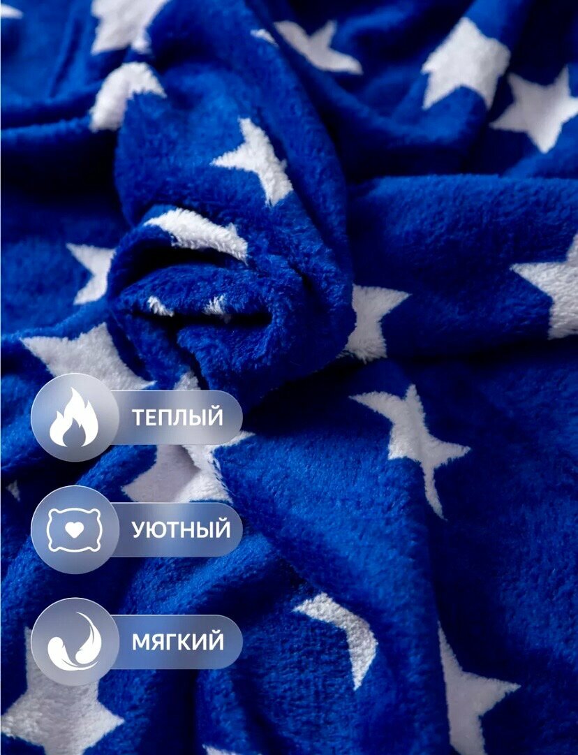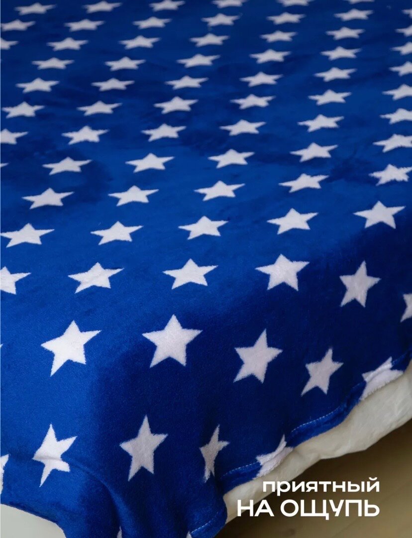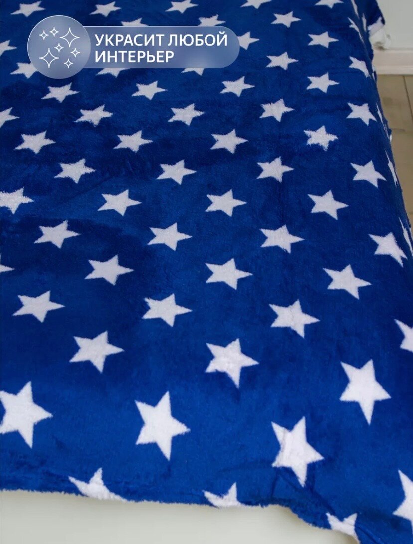 Плед флисовый Синий "Звезды" 180х200см. плед 2-спальное покрывало