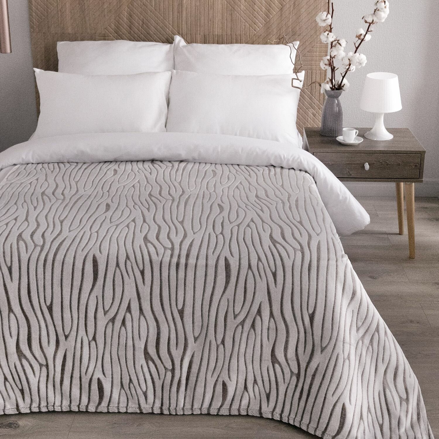 Купить Плед на кровать 200х220 см "Зебра", велюровый бежевый