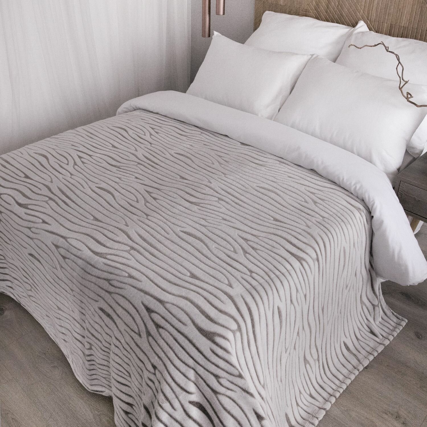Плед покрывало 150Х200 см "Зебра", плюшевый на кровать, серый