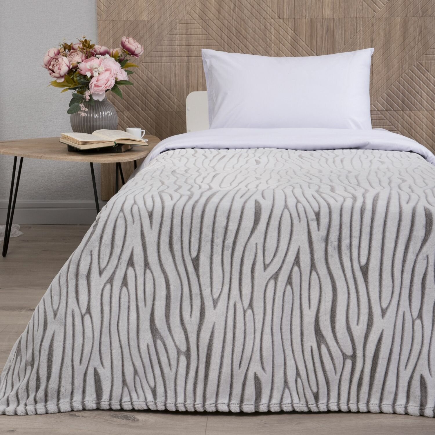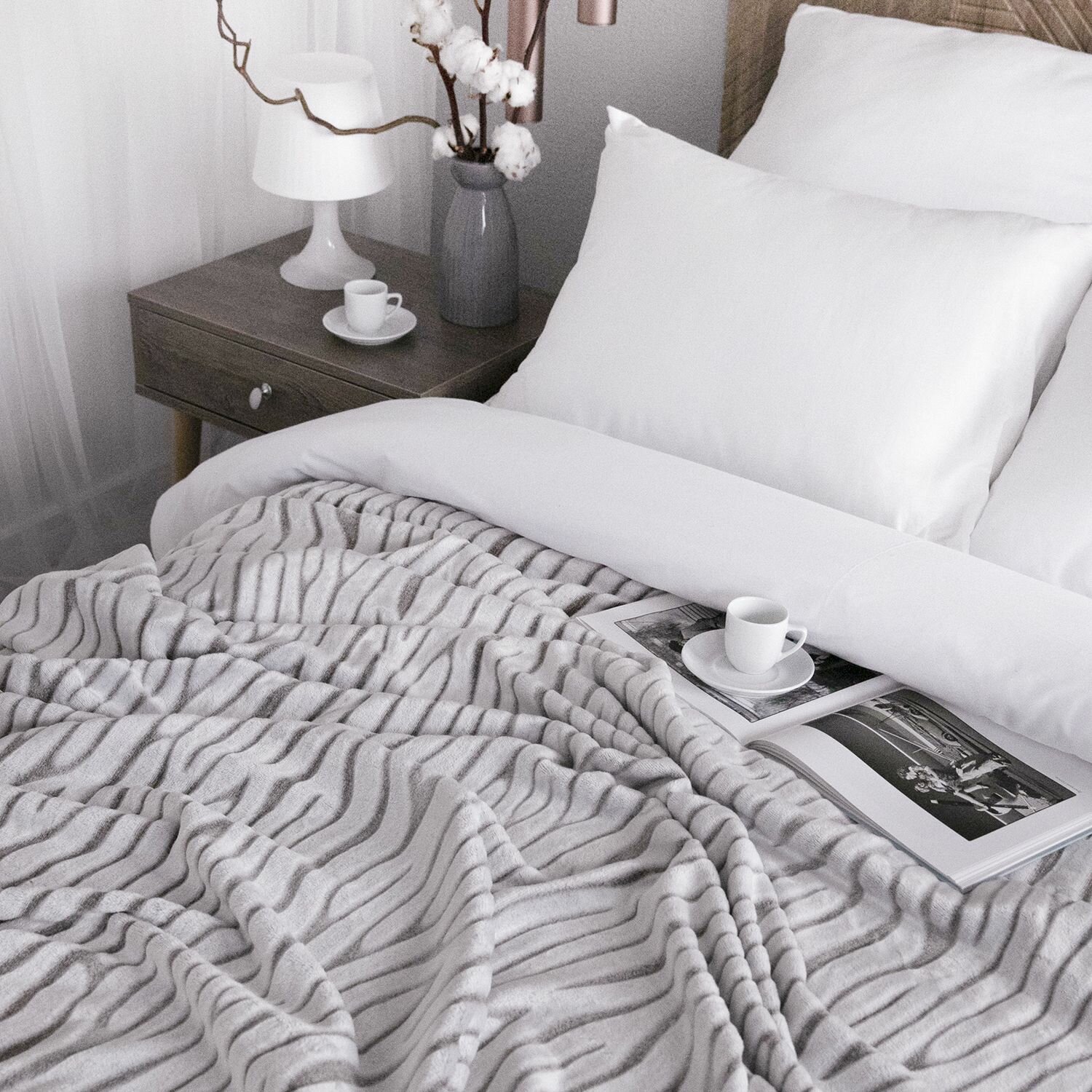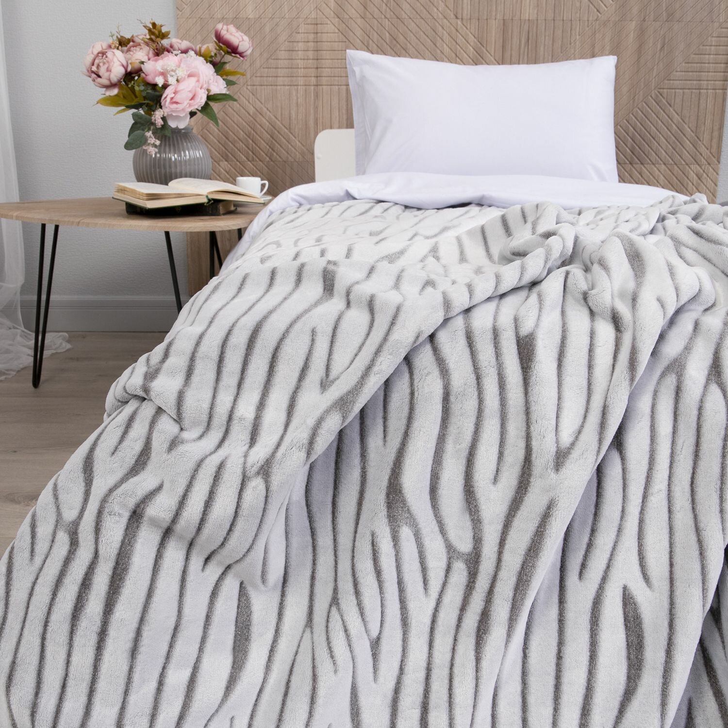 Купить Плед покрывало 150Х200 см "Зебра", плюшевый на кровать, серый
