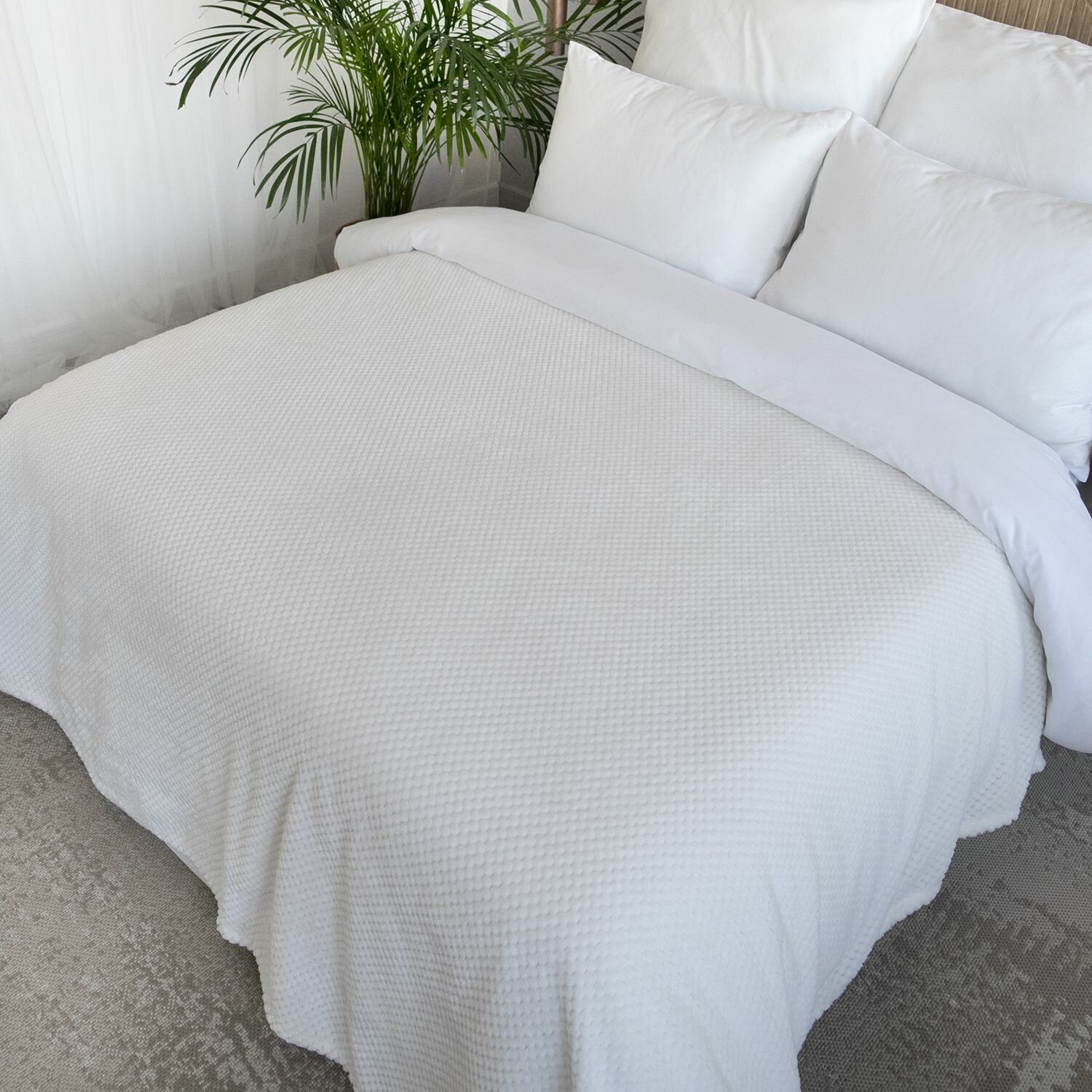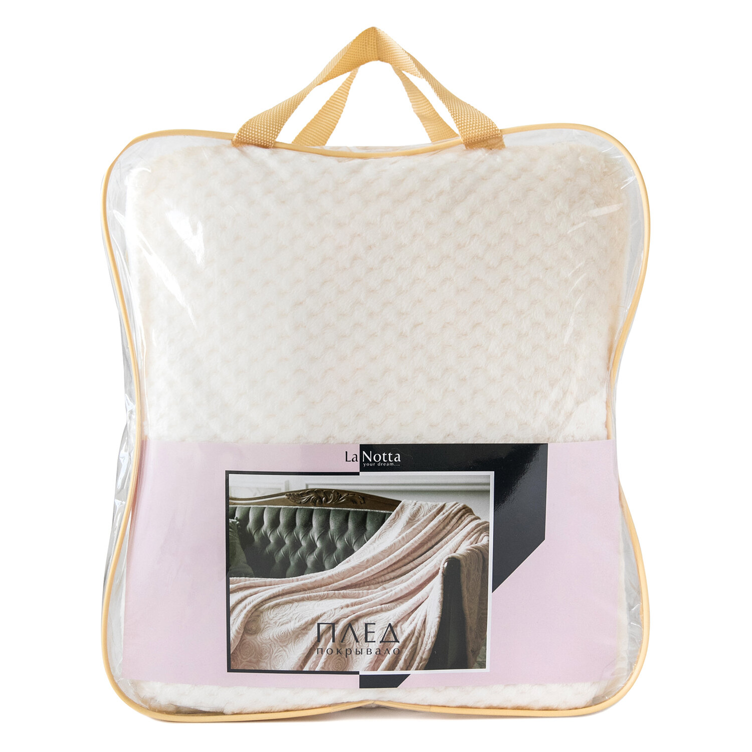 Плед 200х220 см на кровать или диван. Плюшевый и мягкий "Жаккард" молочный